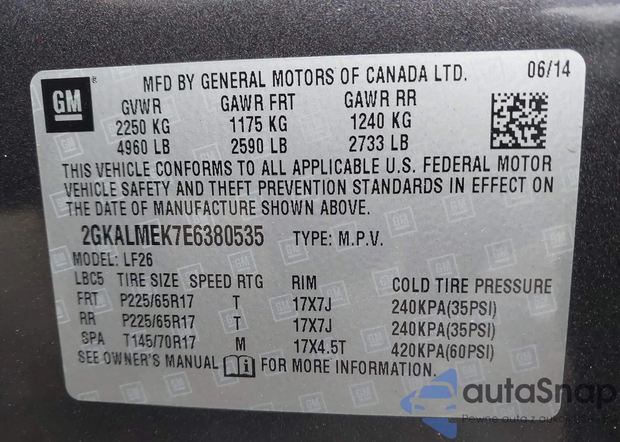 LOT: 43123462 VIN: 2GNALBEK9E6142564