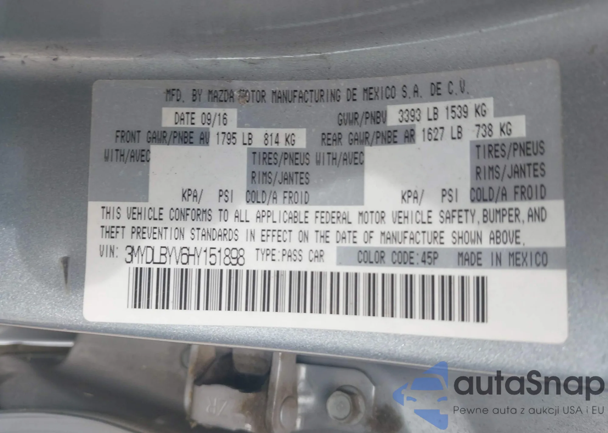 LOT: 43093523 VIN: 3MYDLBYV6HY151898