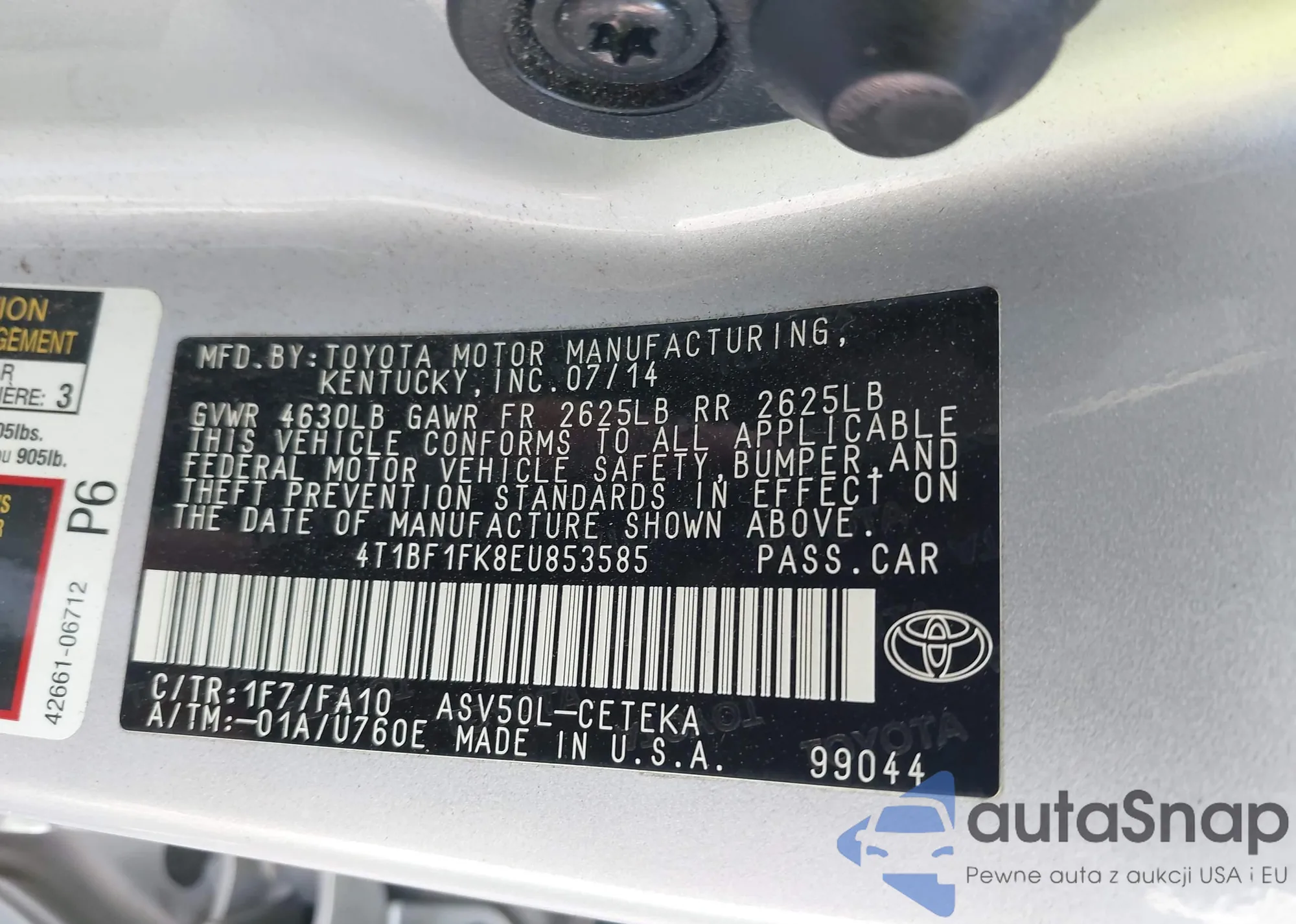 • VIN 4T1BF1FK8EU853585