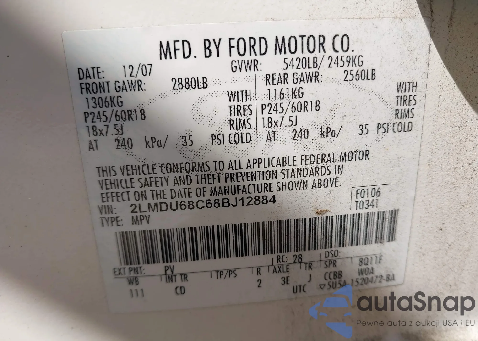 LOT: 43088521 VIN: SALFT24N88H069110