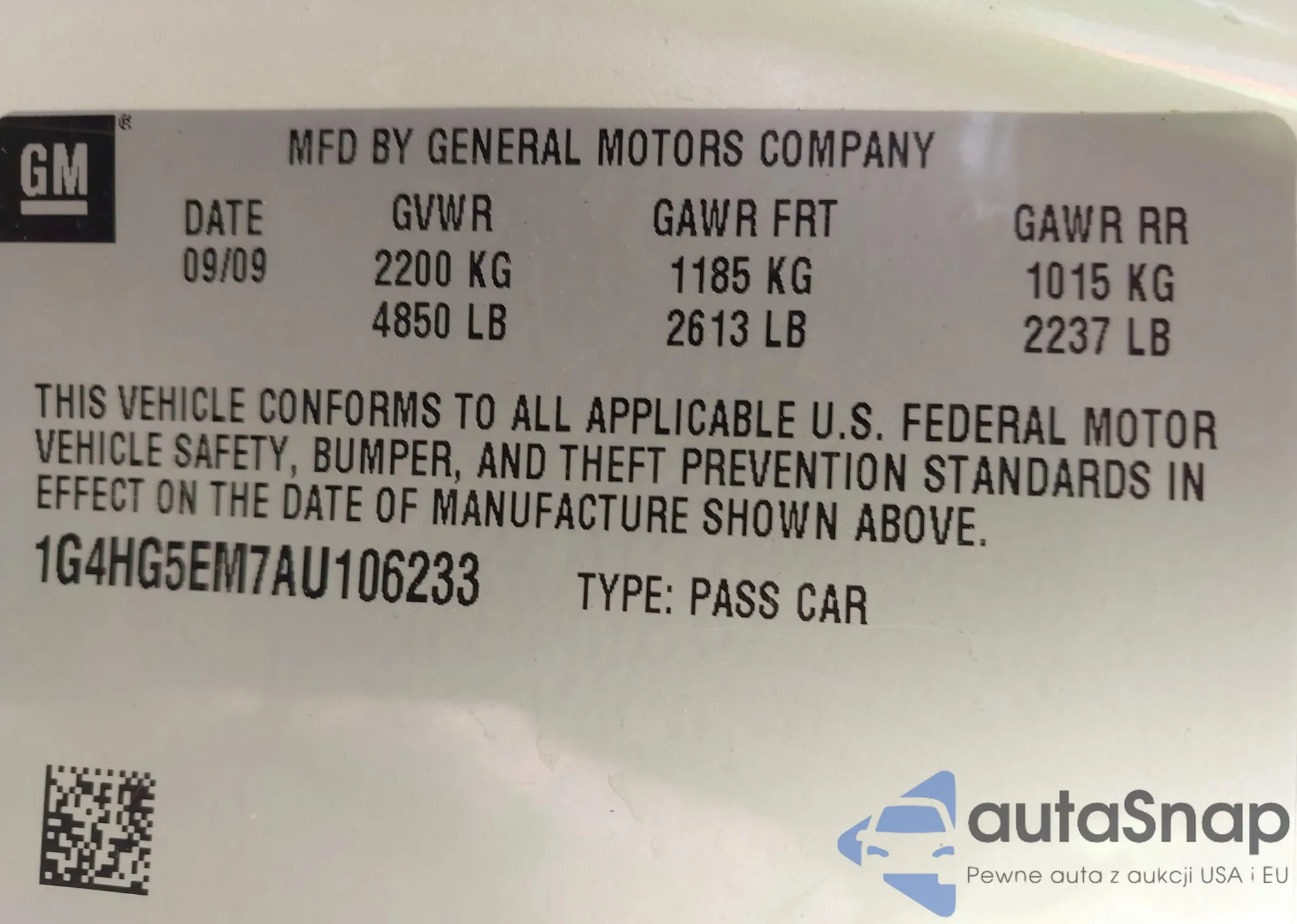 • VIN 1G4HG5EM7AU106233