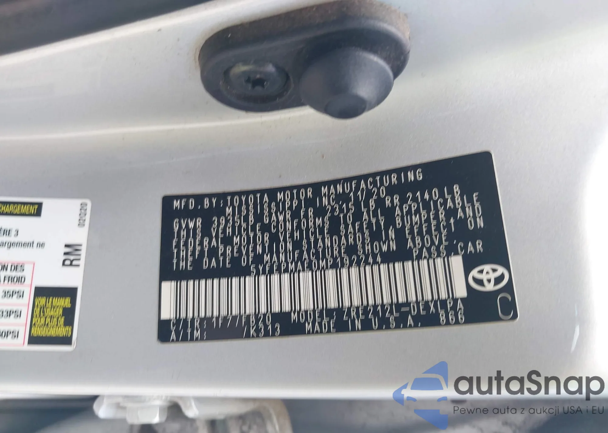 • VIN 5YFEPMAE0MP192244