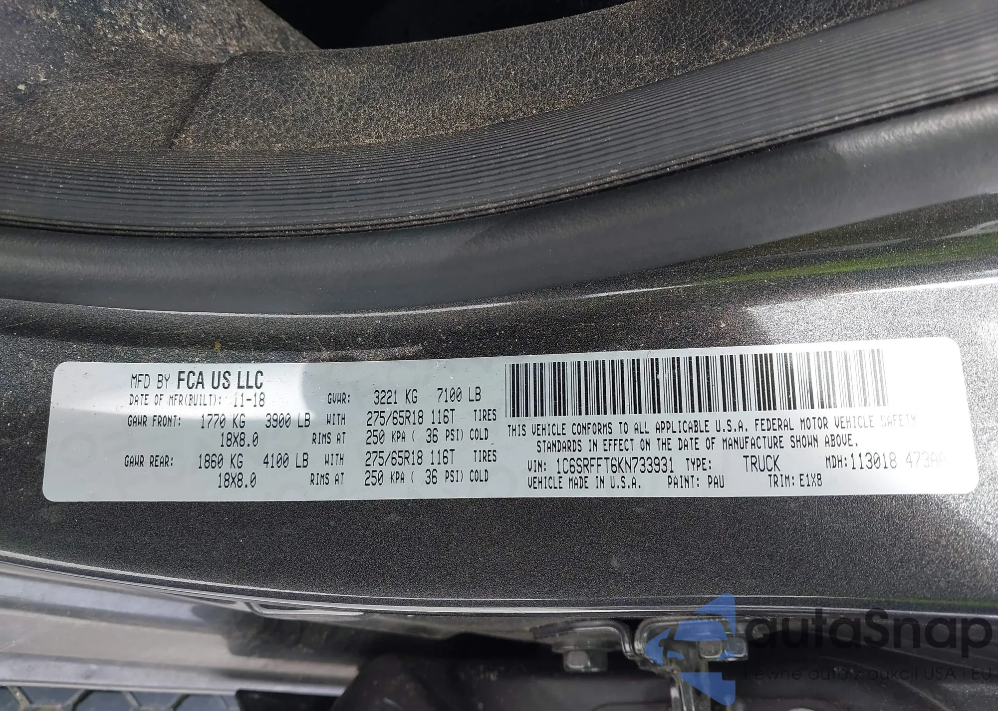 • VIN 1C6RR7LT3HS780627