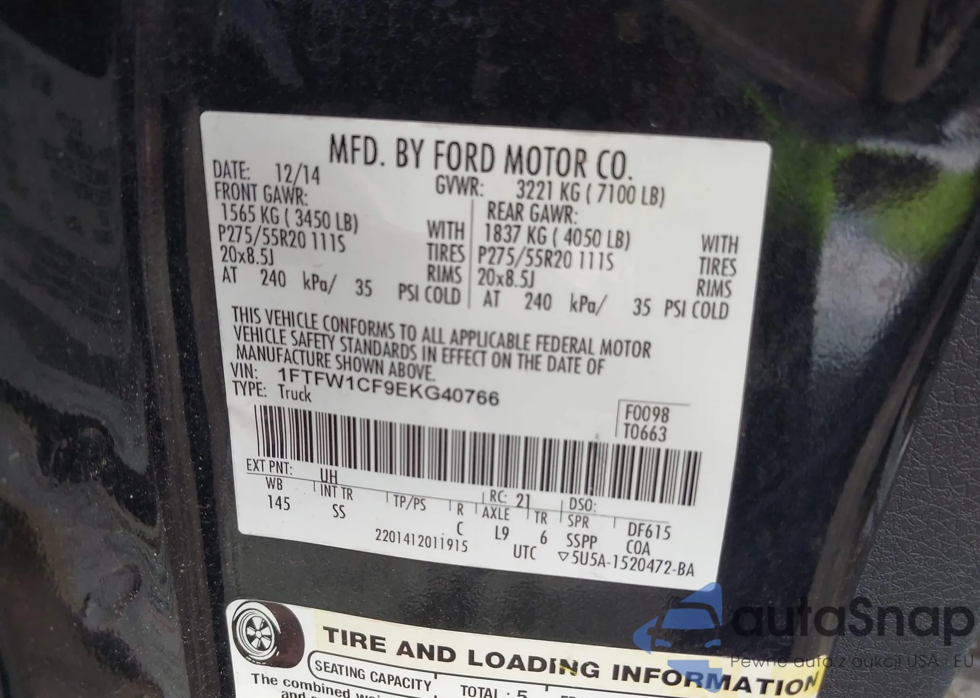 • VIN 1FTFW1CF9EKG40766