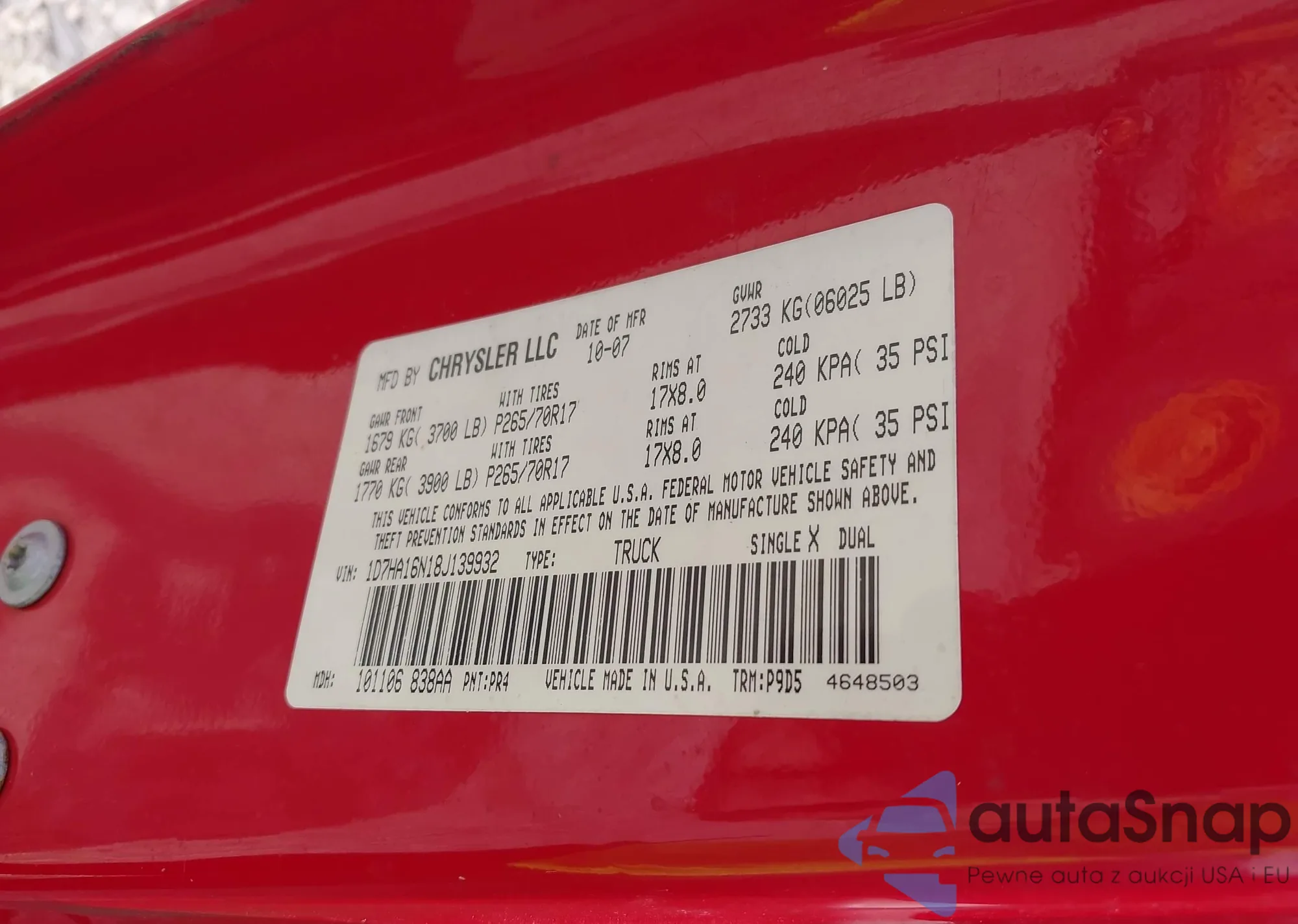 • VIN 1C4RJKBG7S8702038