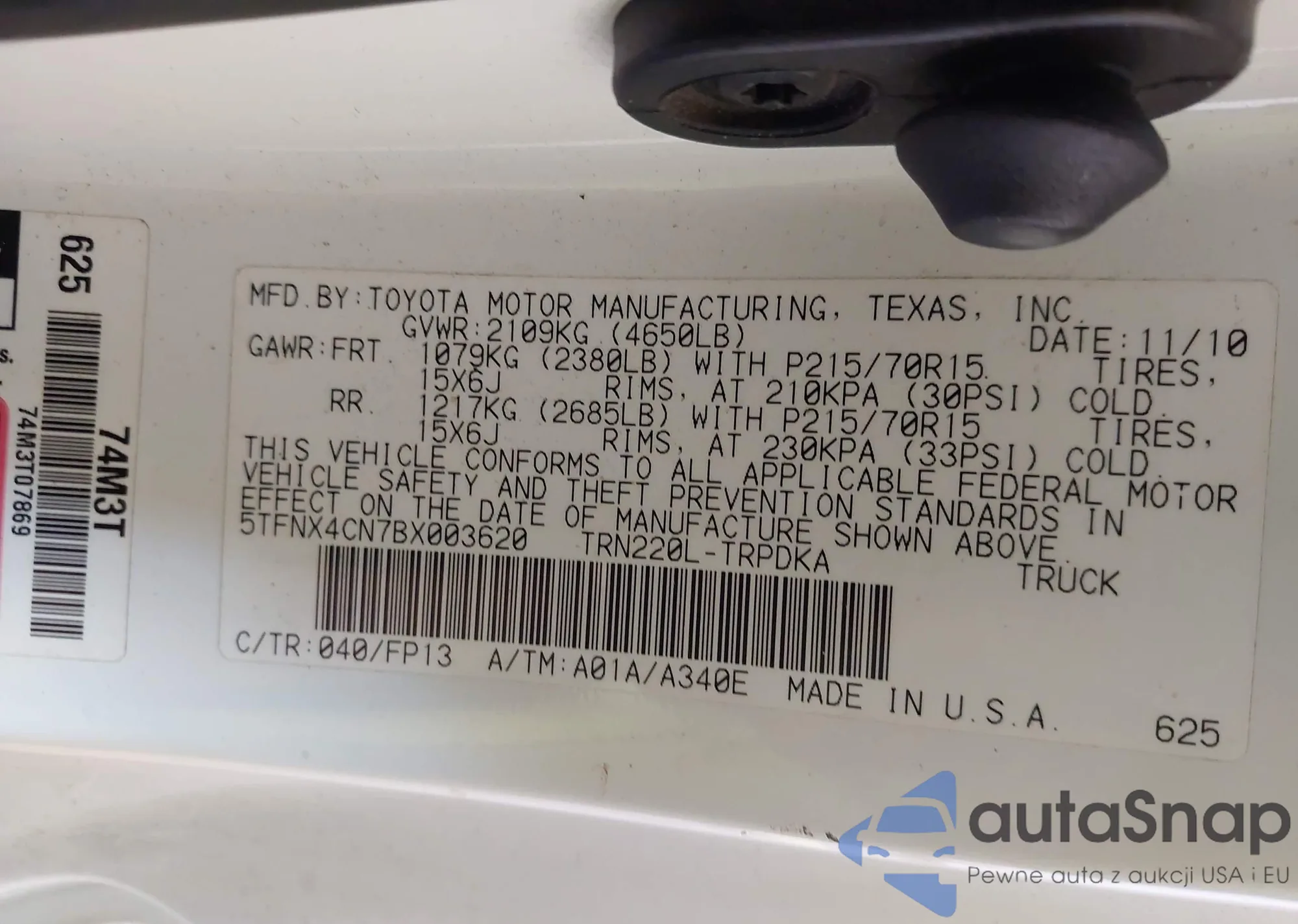 • VIN 5TFNX4CN7BX003620