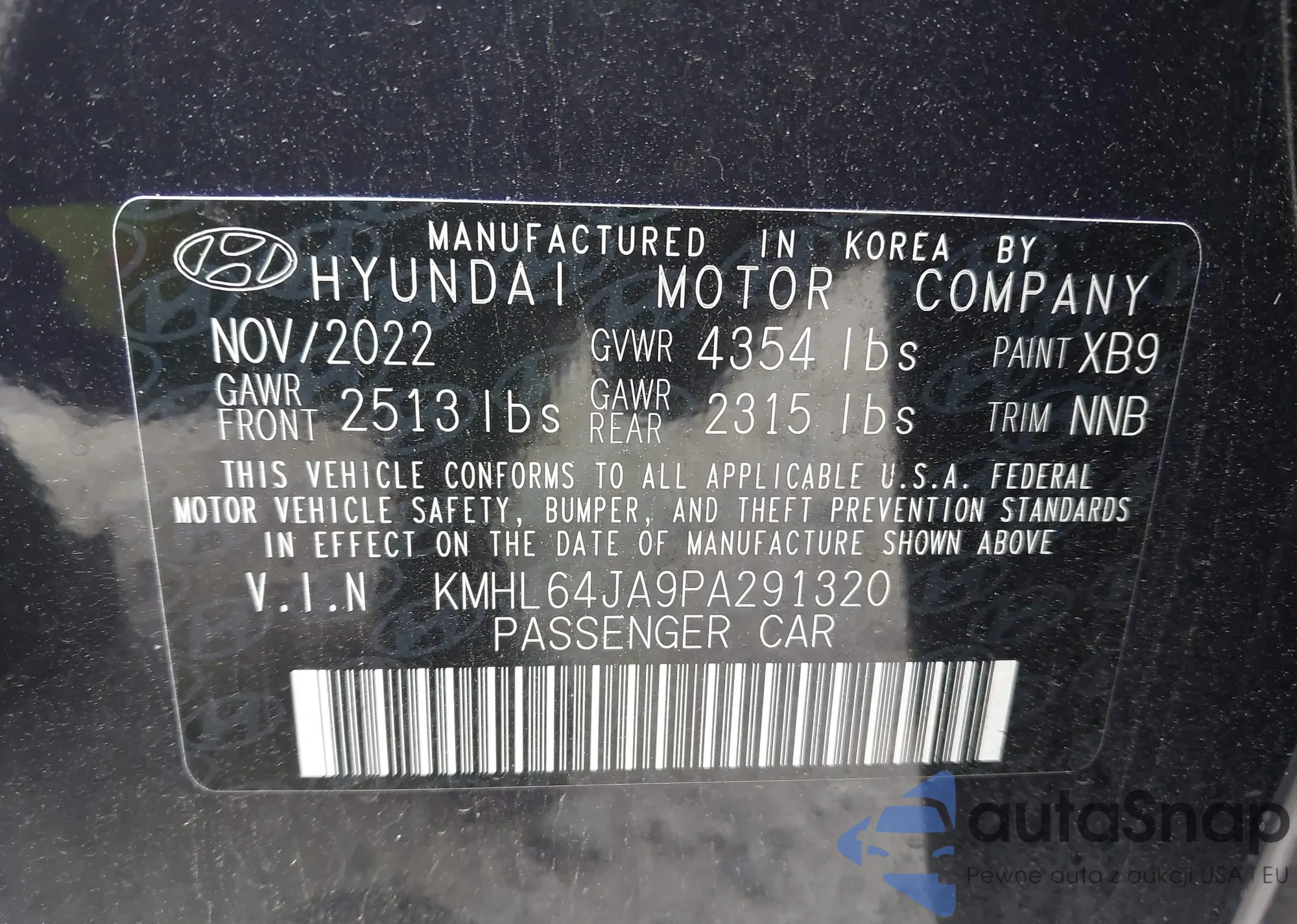 • VIN KMHL64JA9PA291320