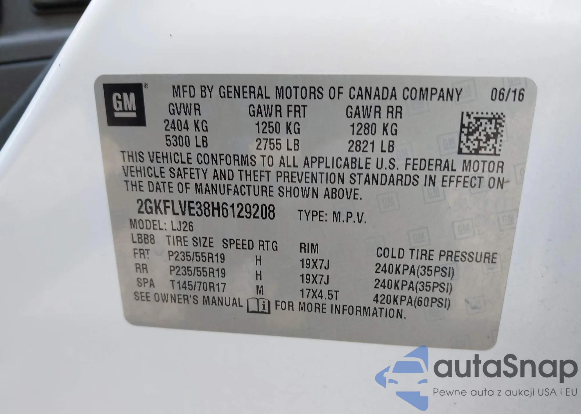 LOT: 42654144 VIN: 2GKFLVE38H6129208