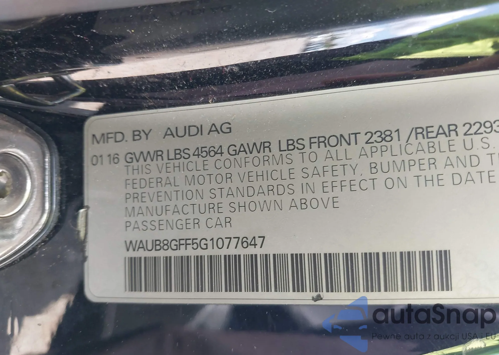• VIN WAUB8GFF5G1077647