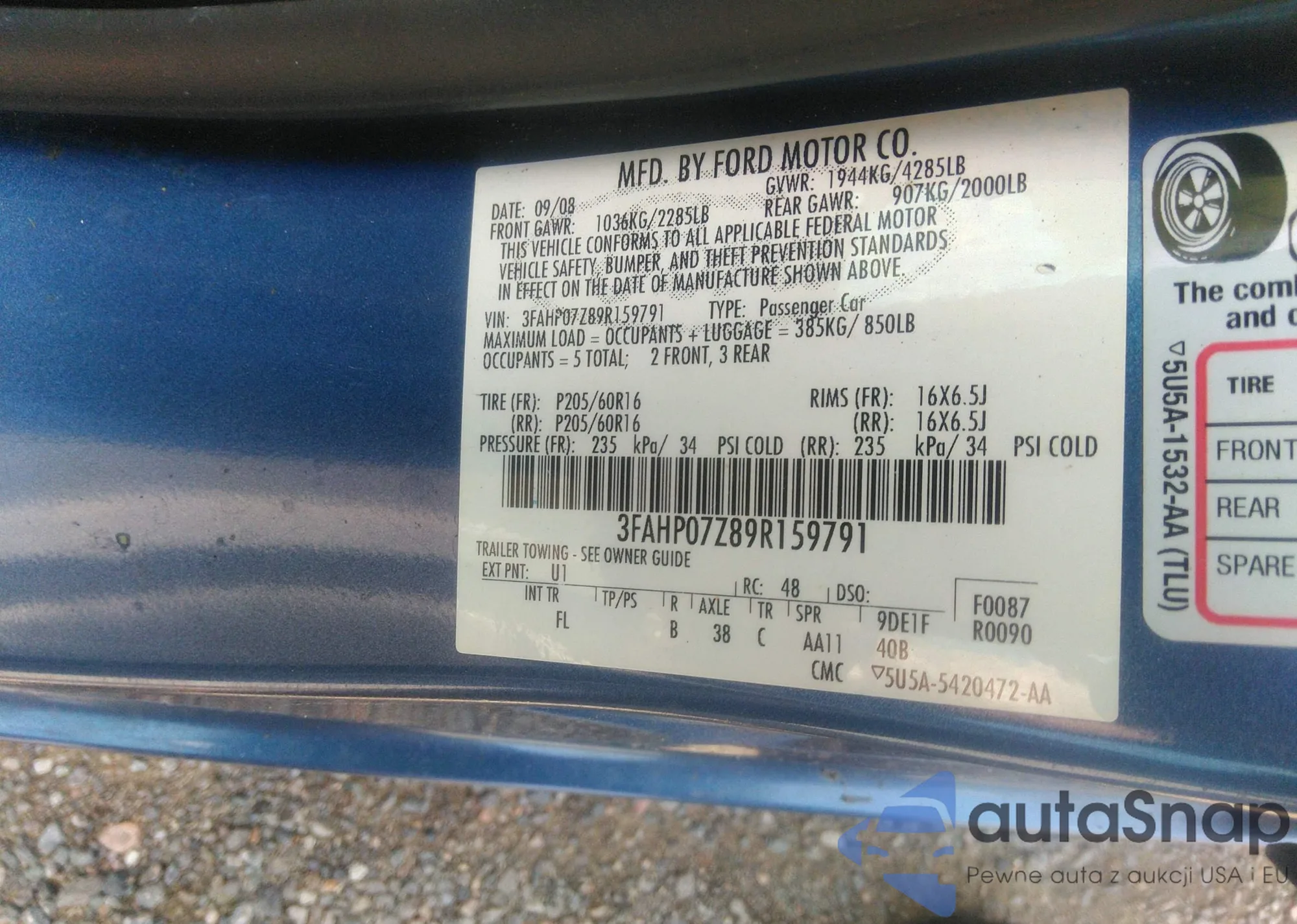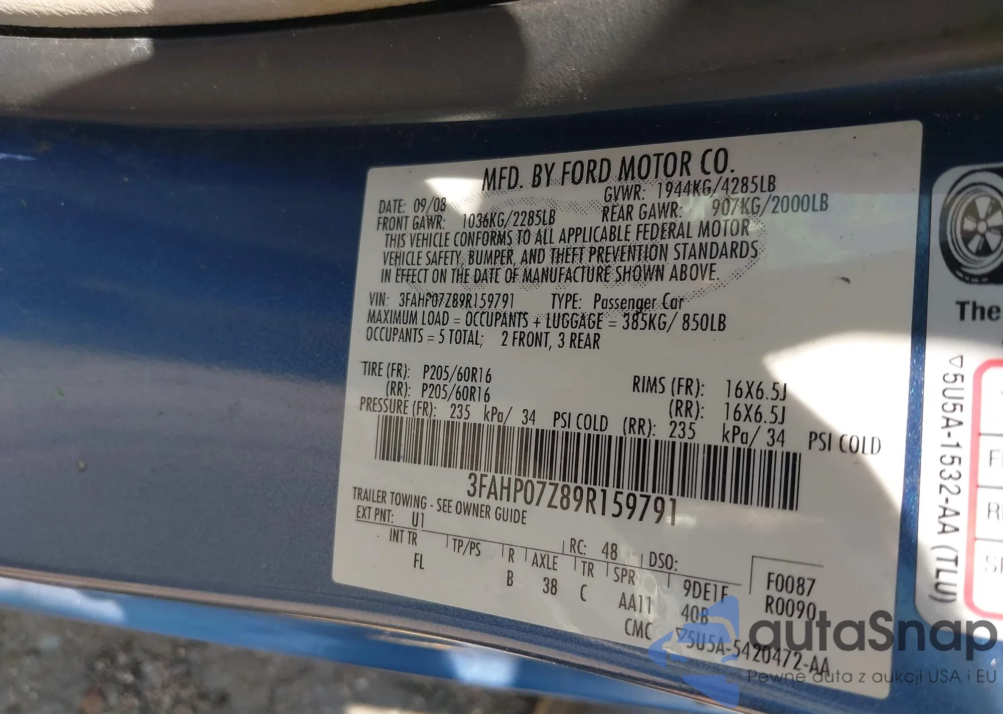 • VIN 3FAHP07Z89R159791