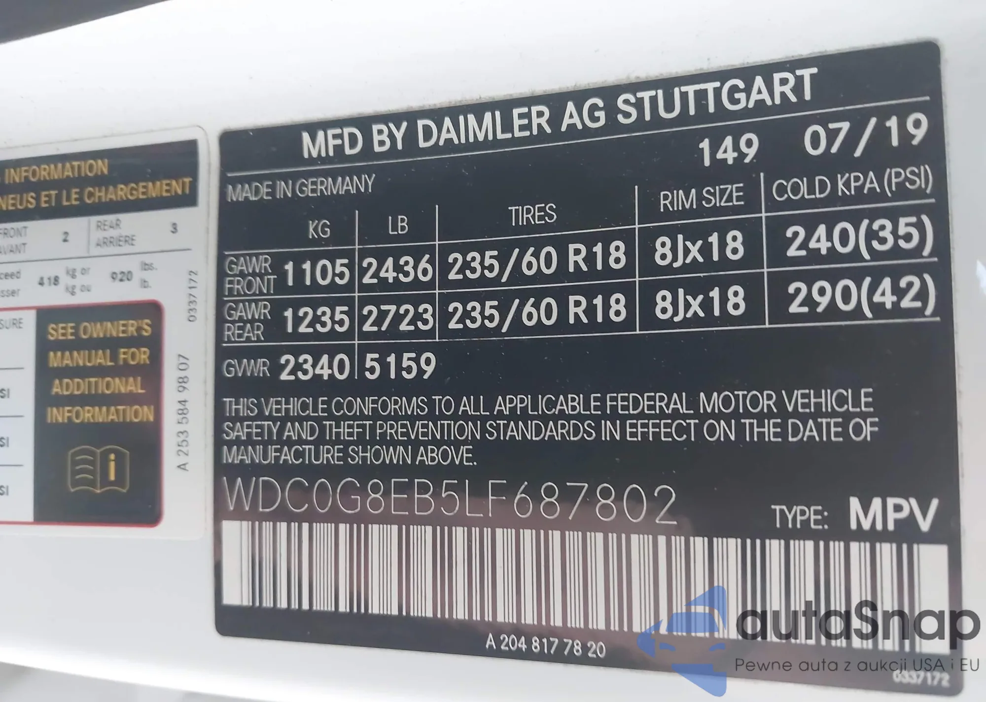 • VIN WDC0G8EB5LF687802
