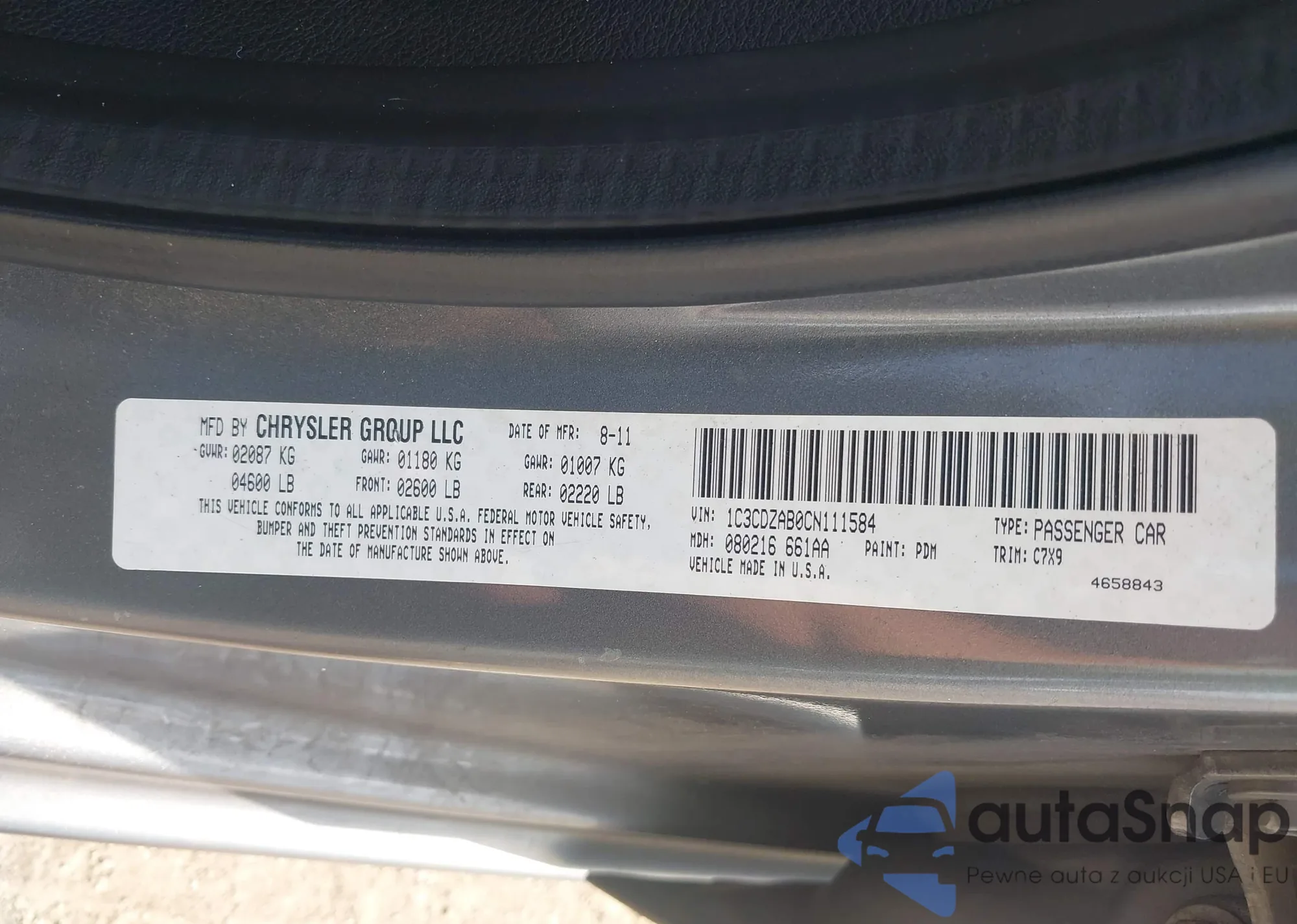 LOT: 43068440 VIN: 1C3CDZAB0CN111584