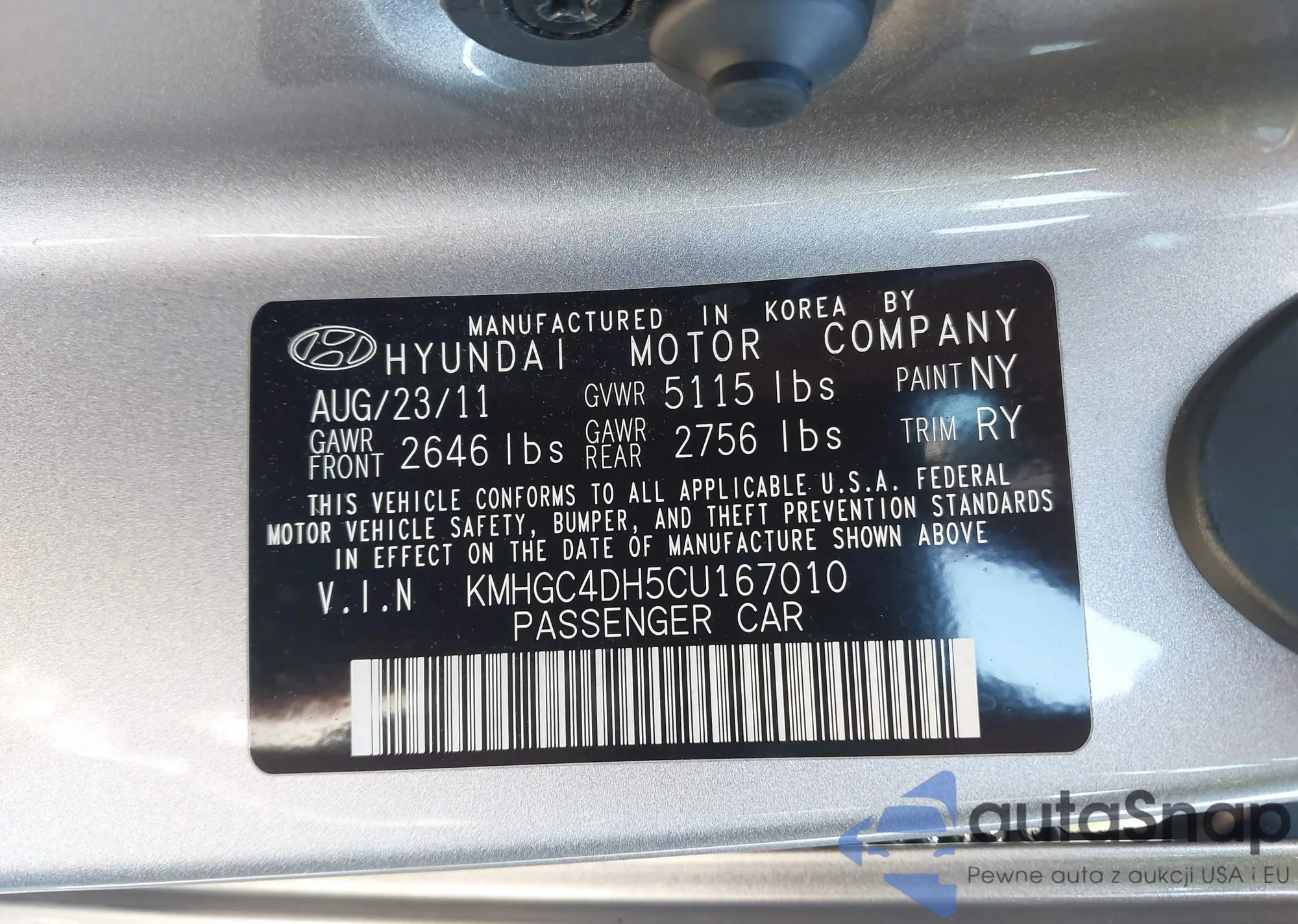 • VIN KMHGC4DH5CU167010
