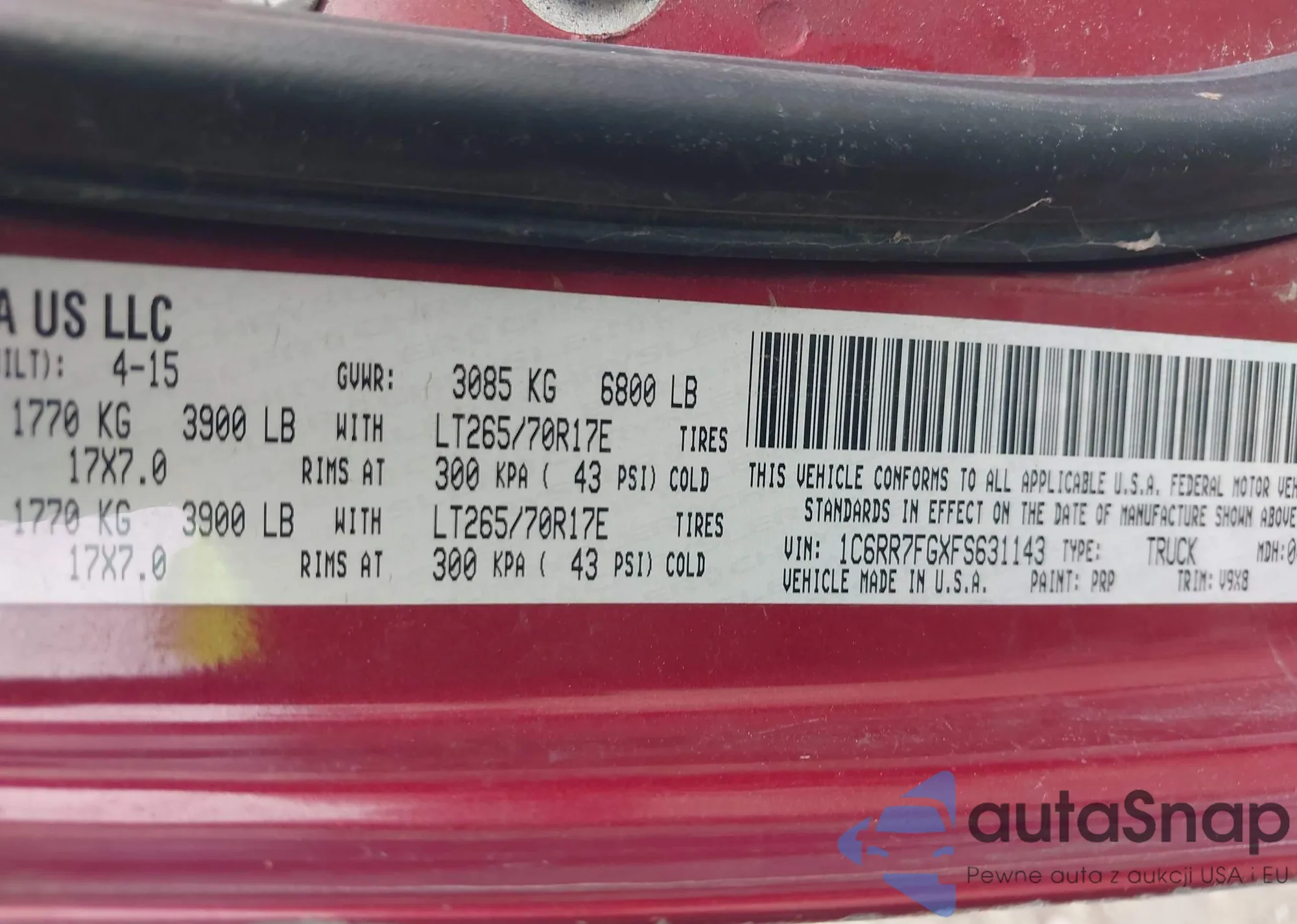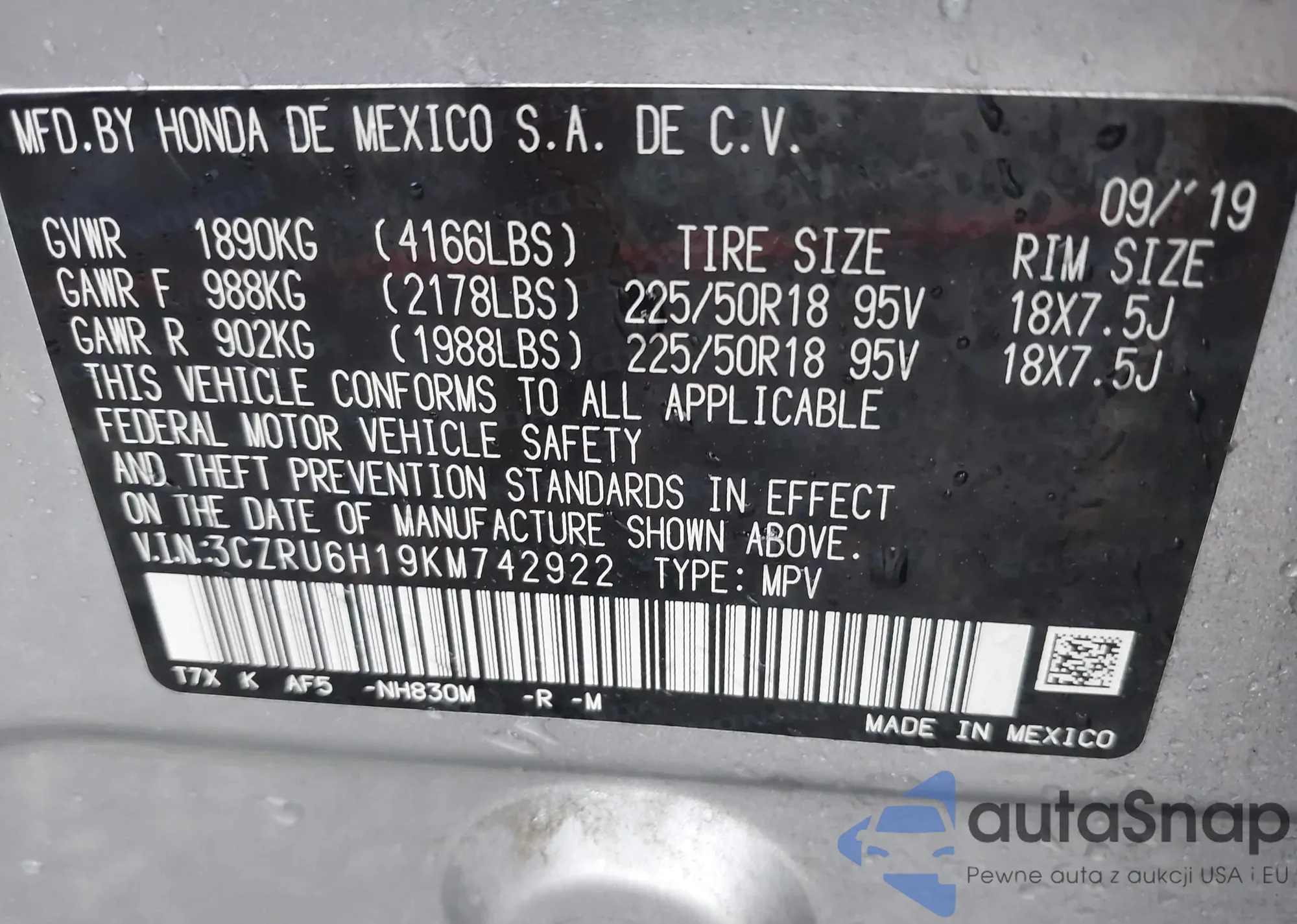 • VIN 3CZRU6H19KM742922