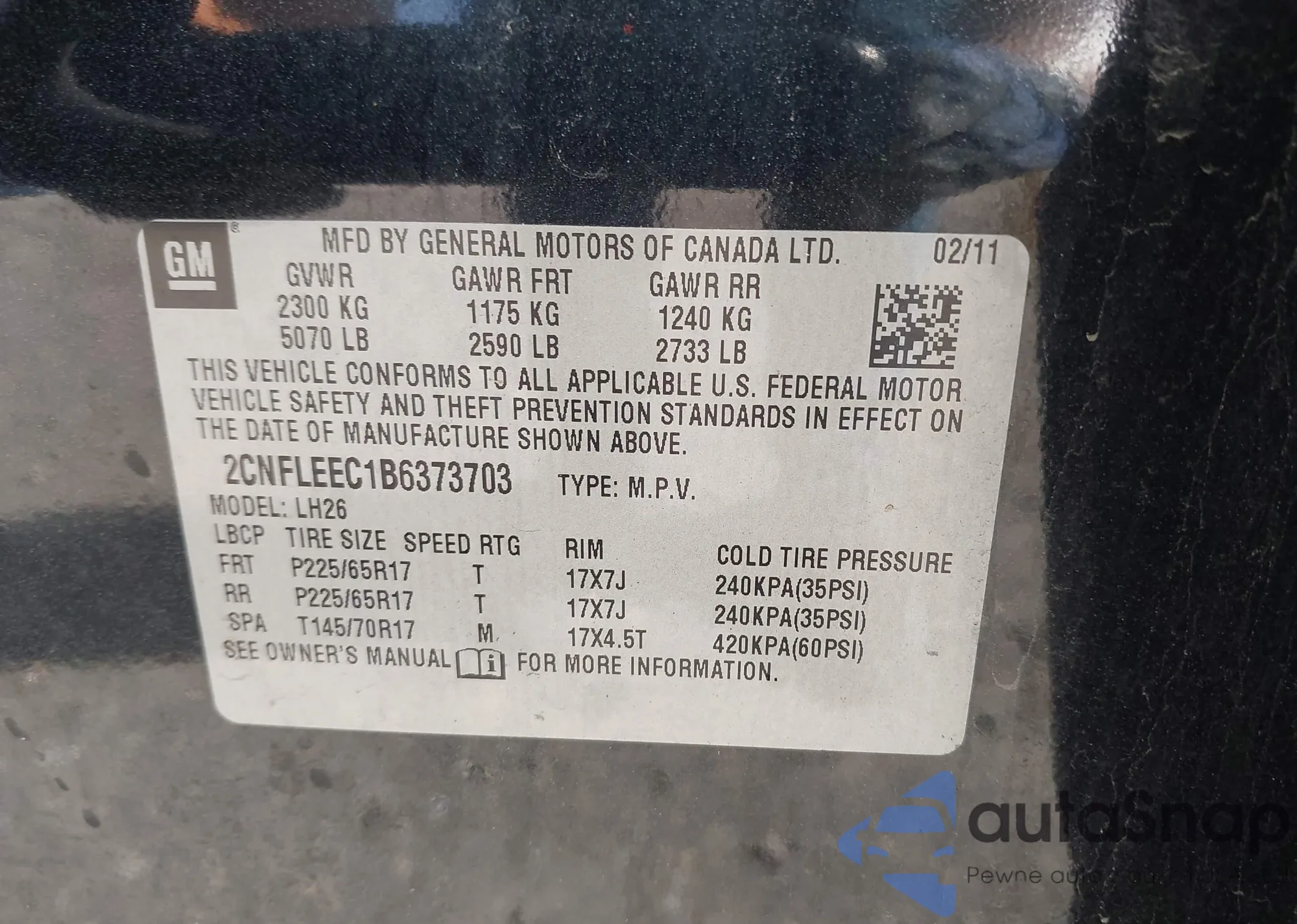 • VIN 2CNFLEEC1B6373703