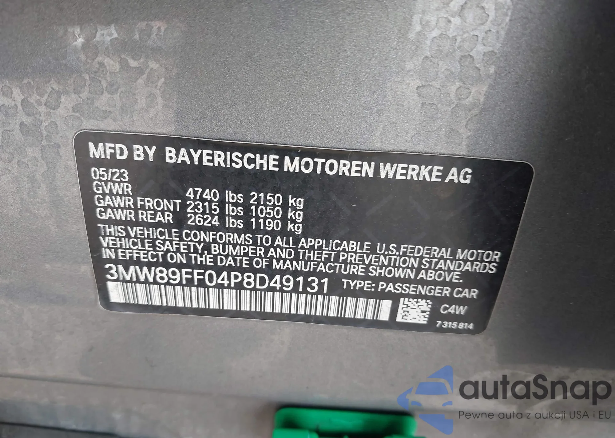 LOT: 43202165 VIN: 3MW89FF04P8D49131