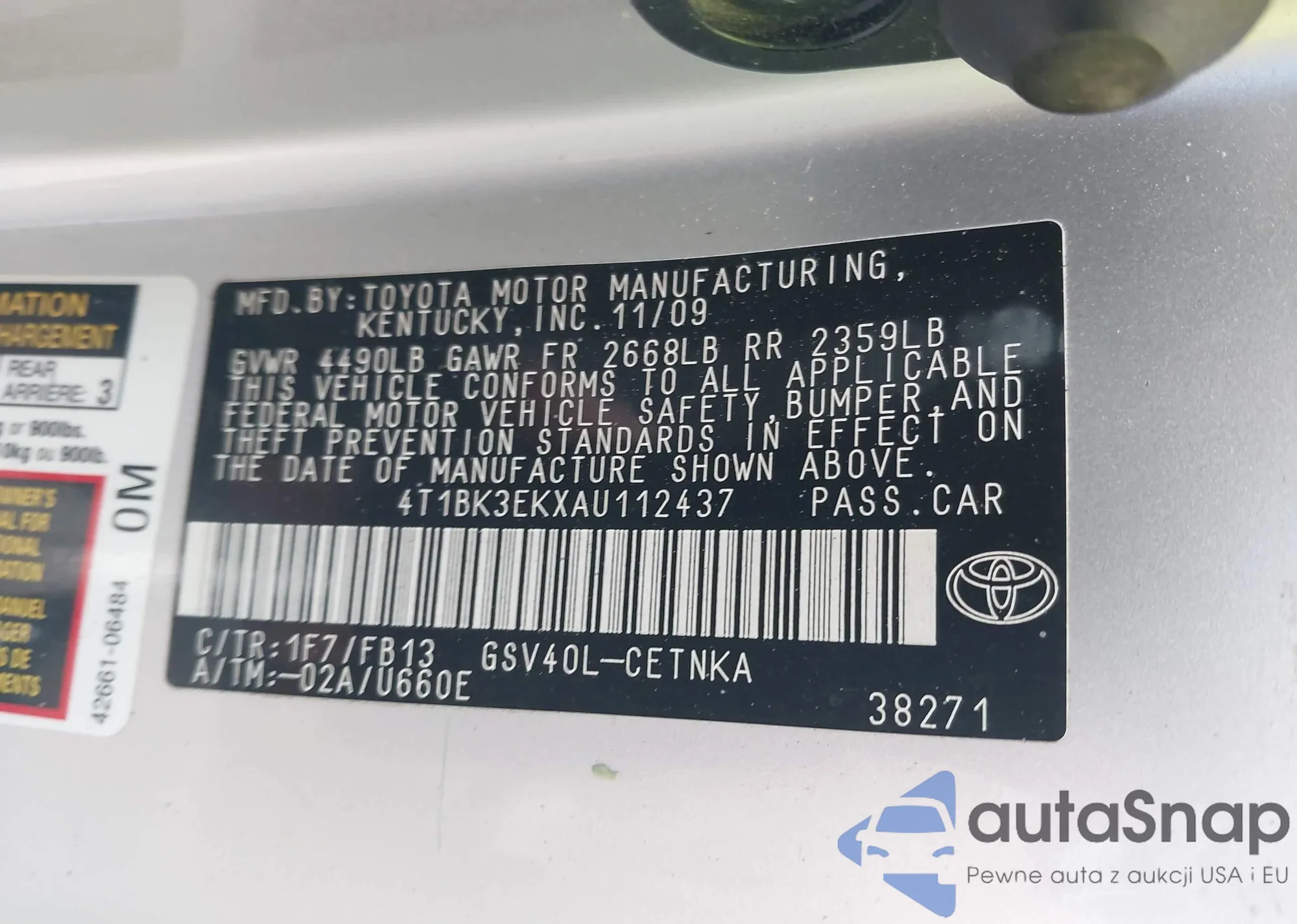 • VIN 4T1BK3EKXAU112437