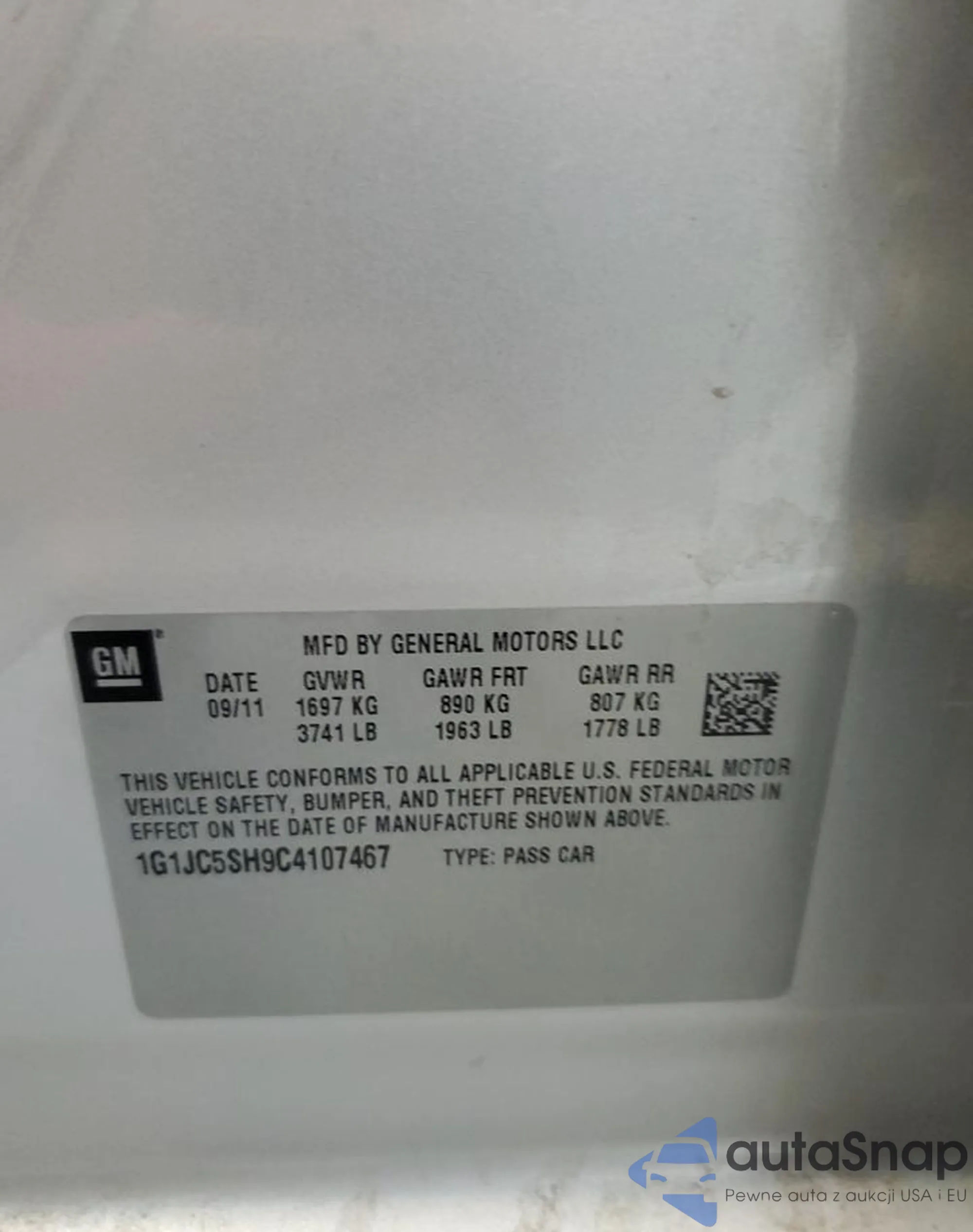 • VIN 1G1JC5SH9C4107467