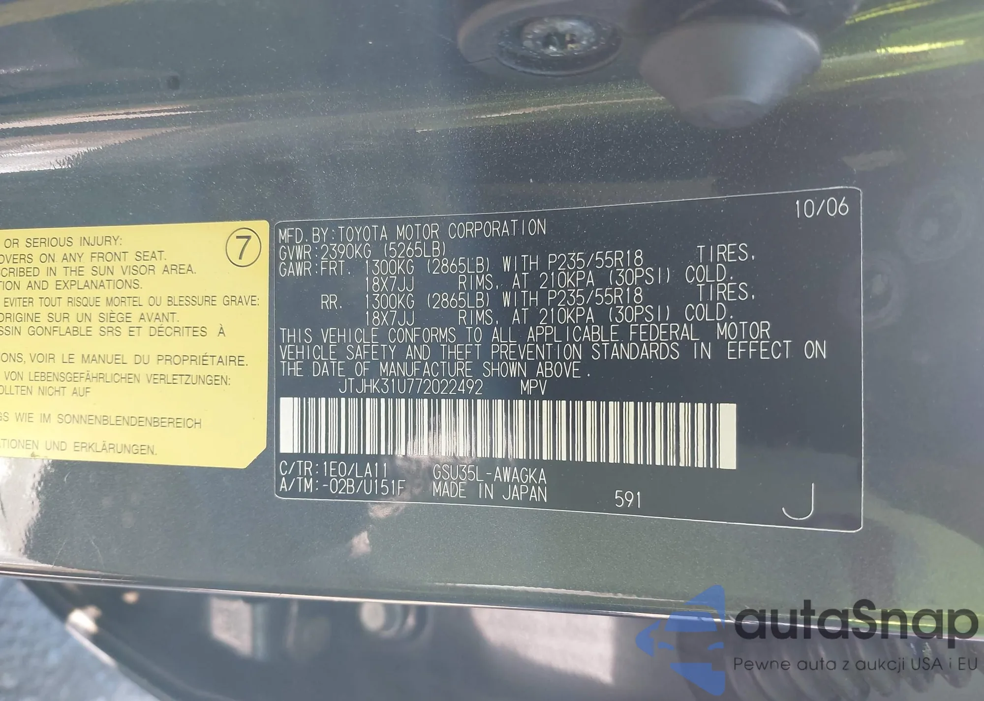 LOT: 42691587 VIN: JTJHK31U772022492