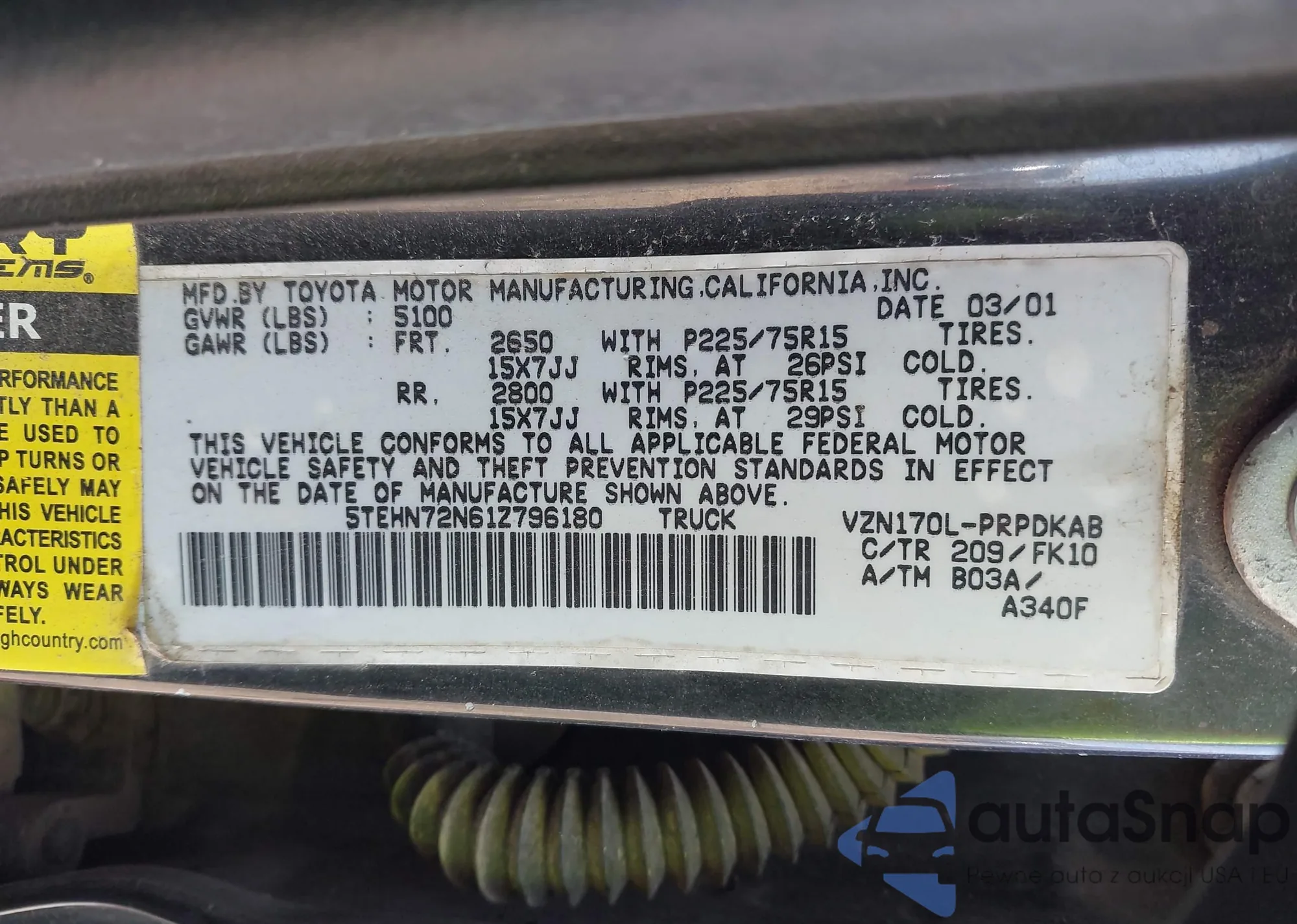 • VIN 5TEHN72N61Z796180