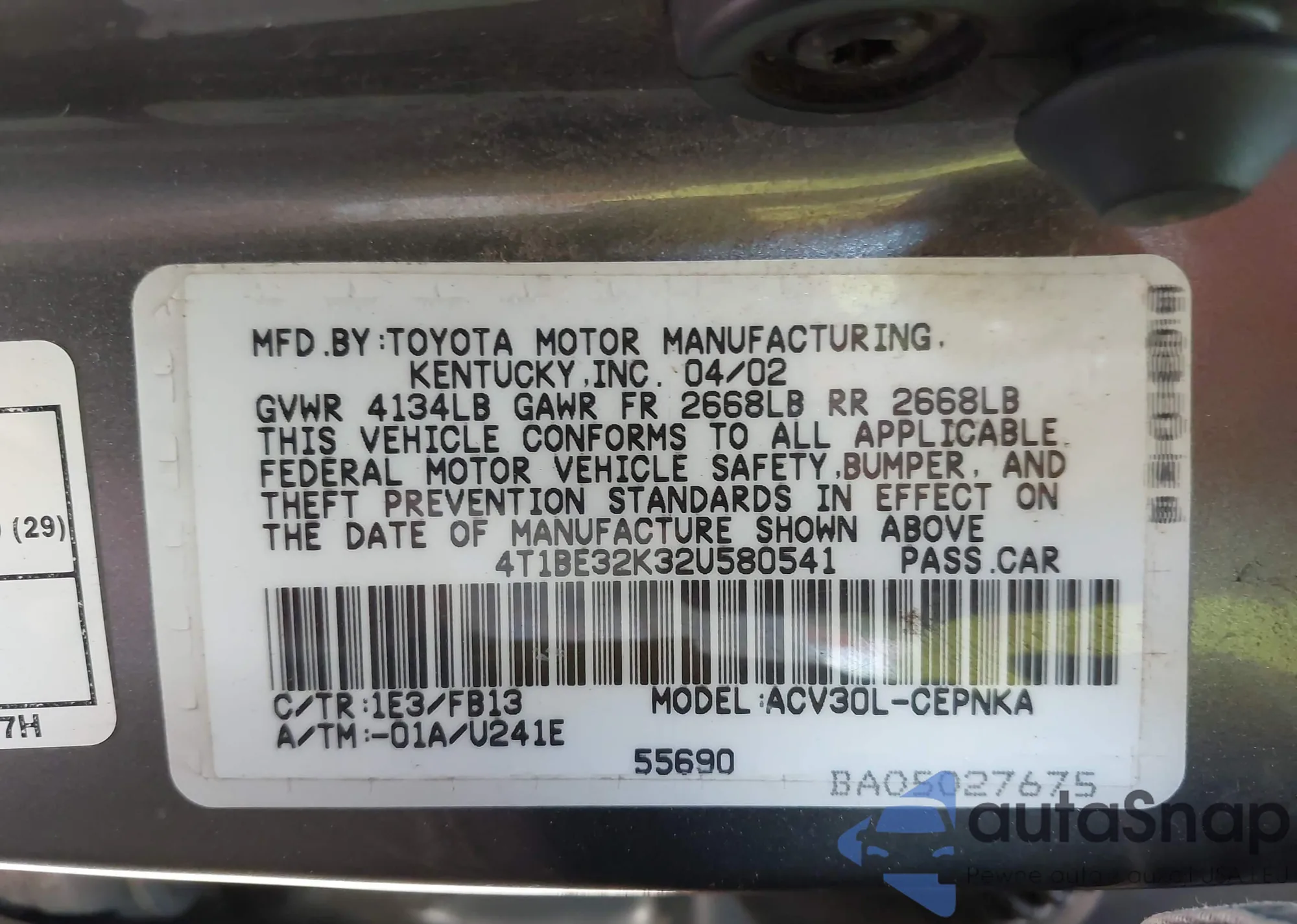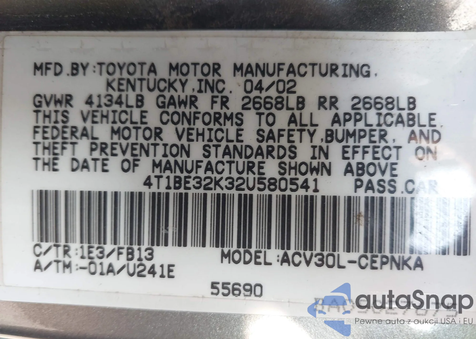 • VIN 4T1BE32K32U580541