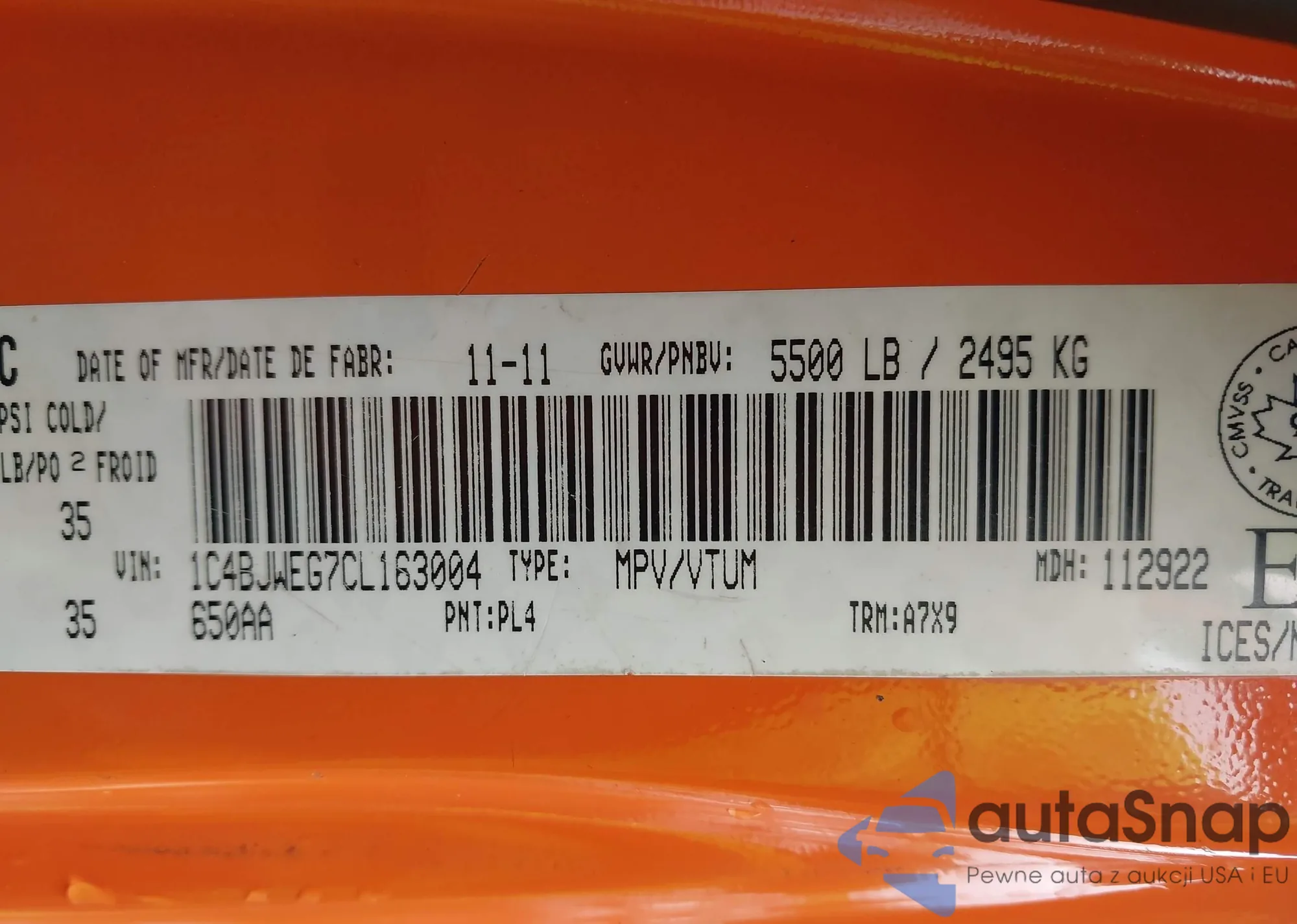 • VIN 2C4RDGDG6CR128779