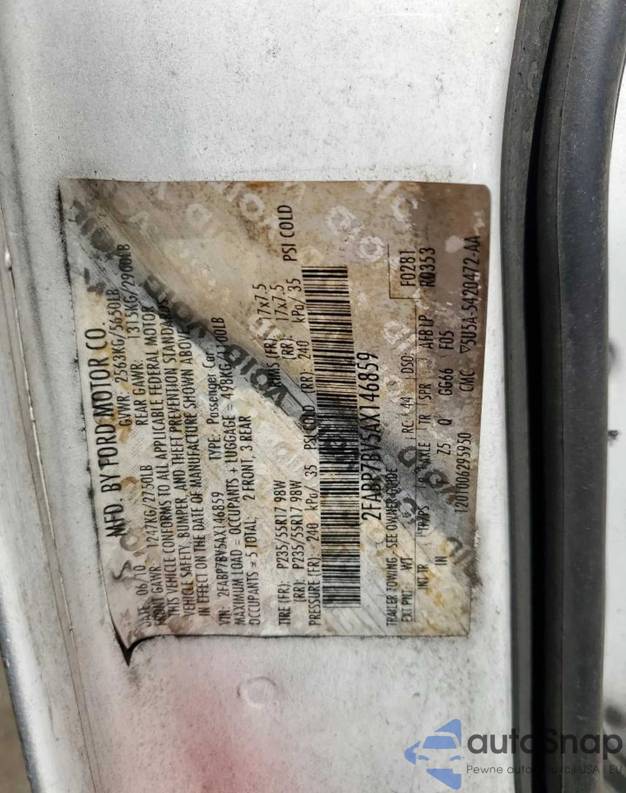 LOT: 70829255 VIN: 2FABP7BV5AX146859
