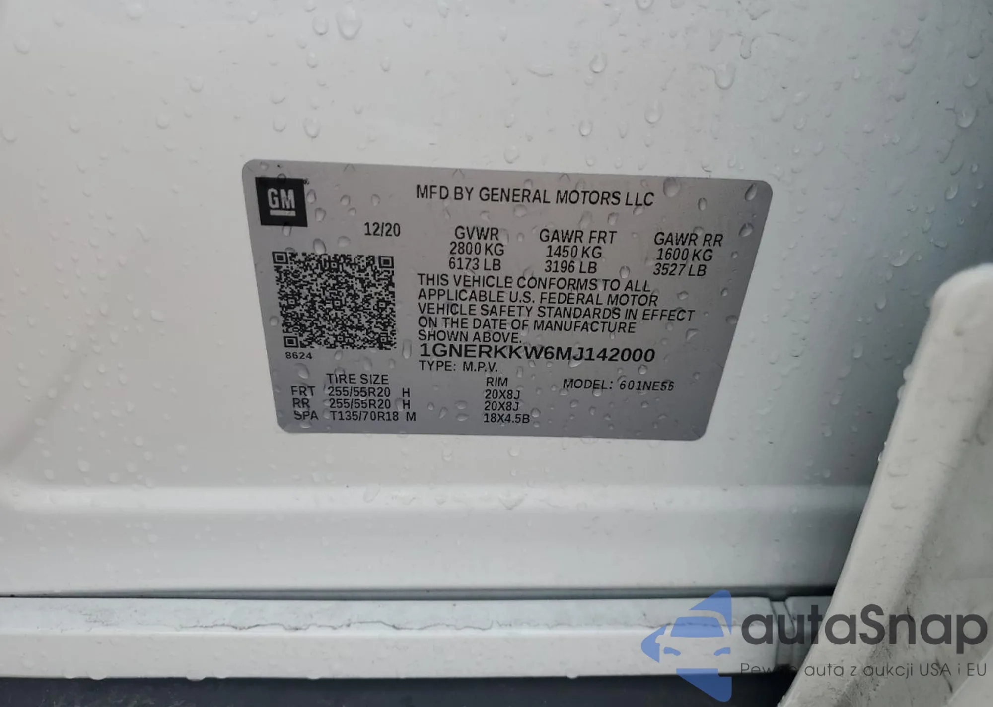 LOT: 44908065 VIN: 1GNERKKW6MJ142000