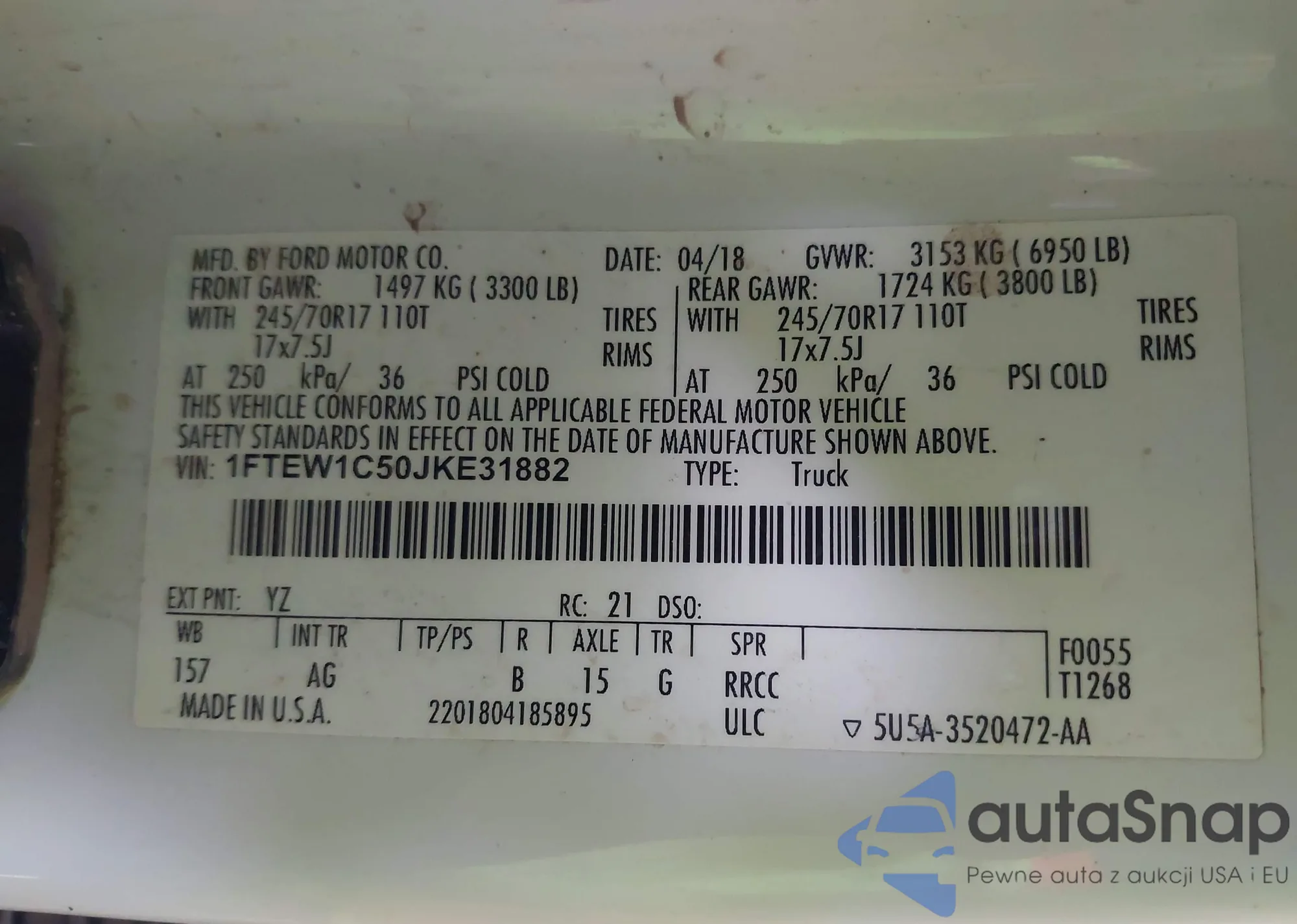 • VIN 1FTFW1ETXCFD00034