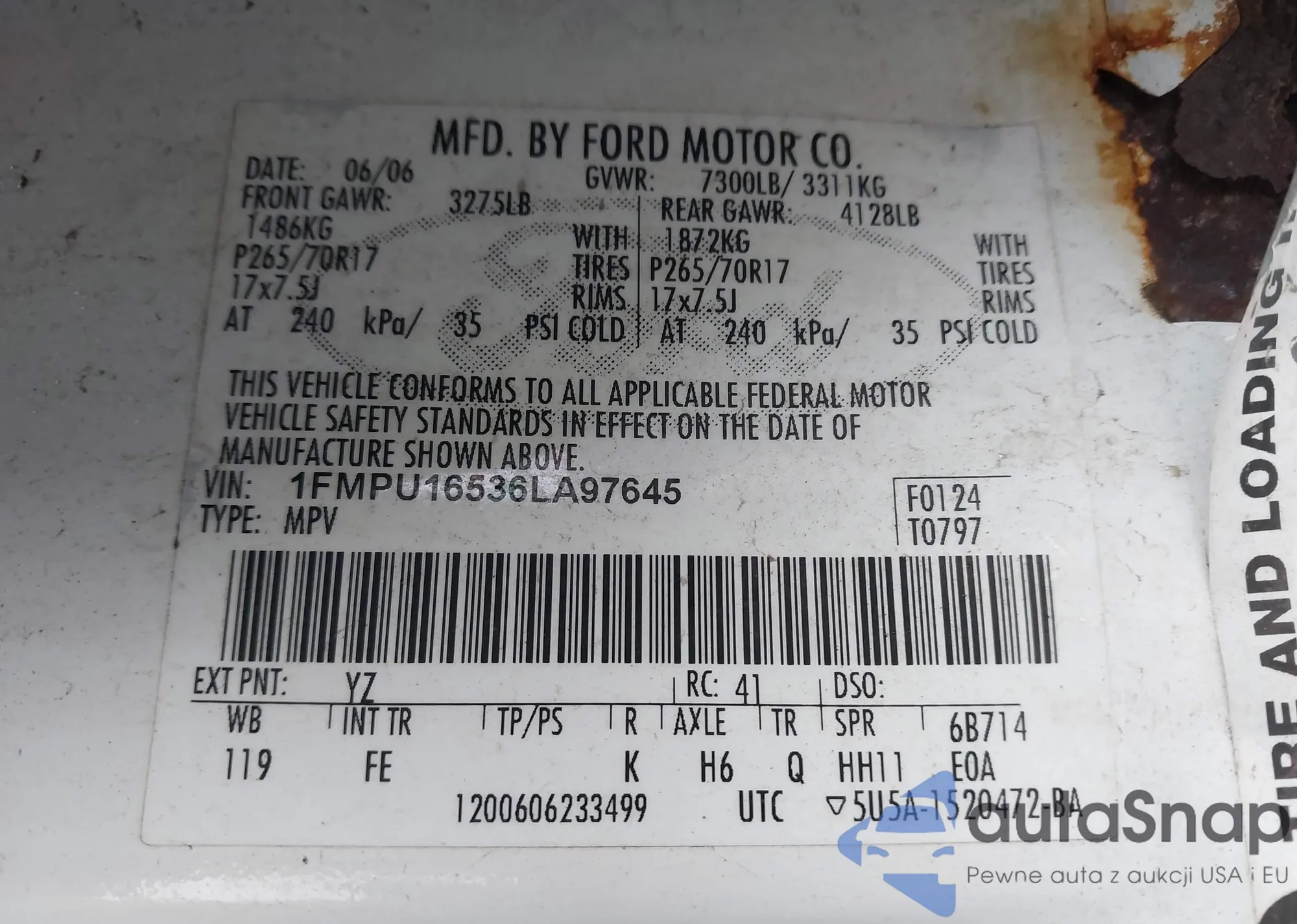 LOT: 41659750 VIN: 1FMPU16536LA97645