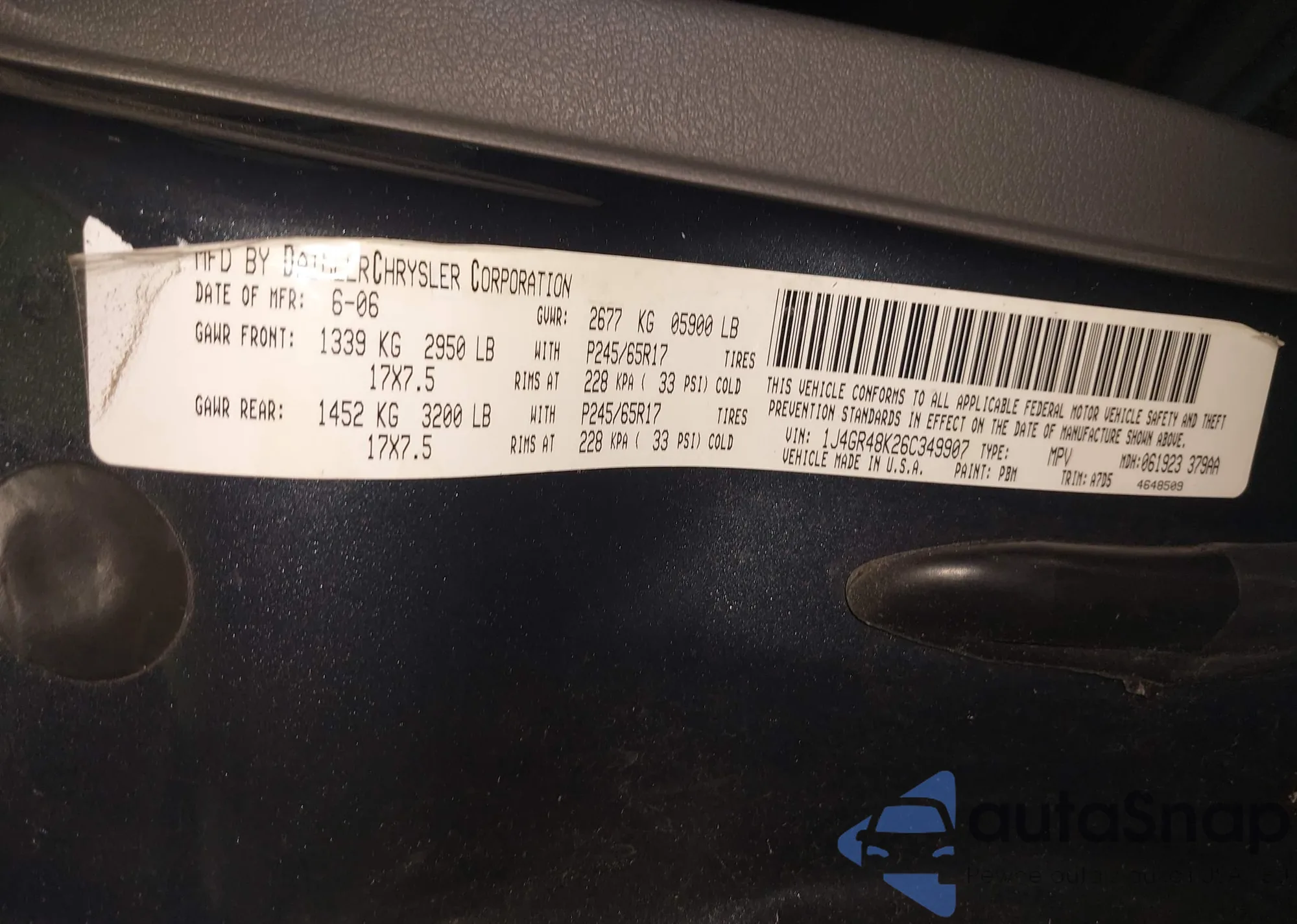 LOT: 42608129 VIN: 1J4GR48K26C349907
