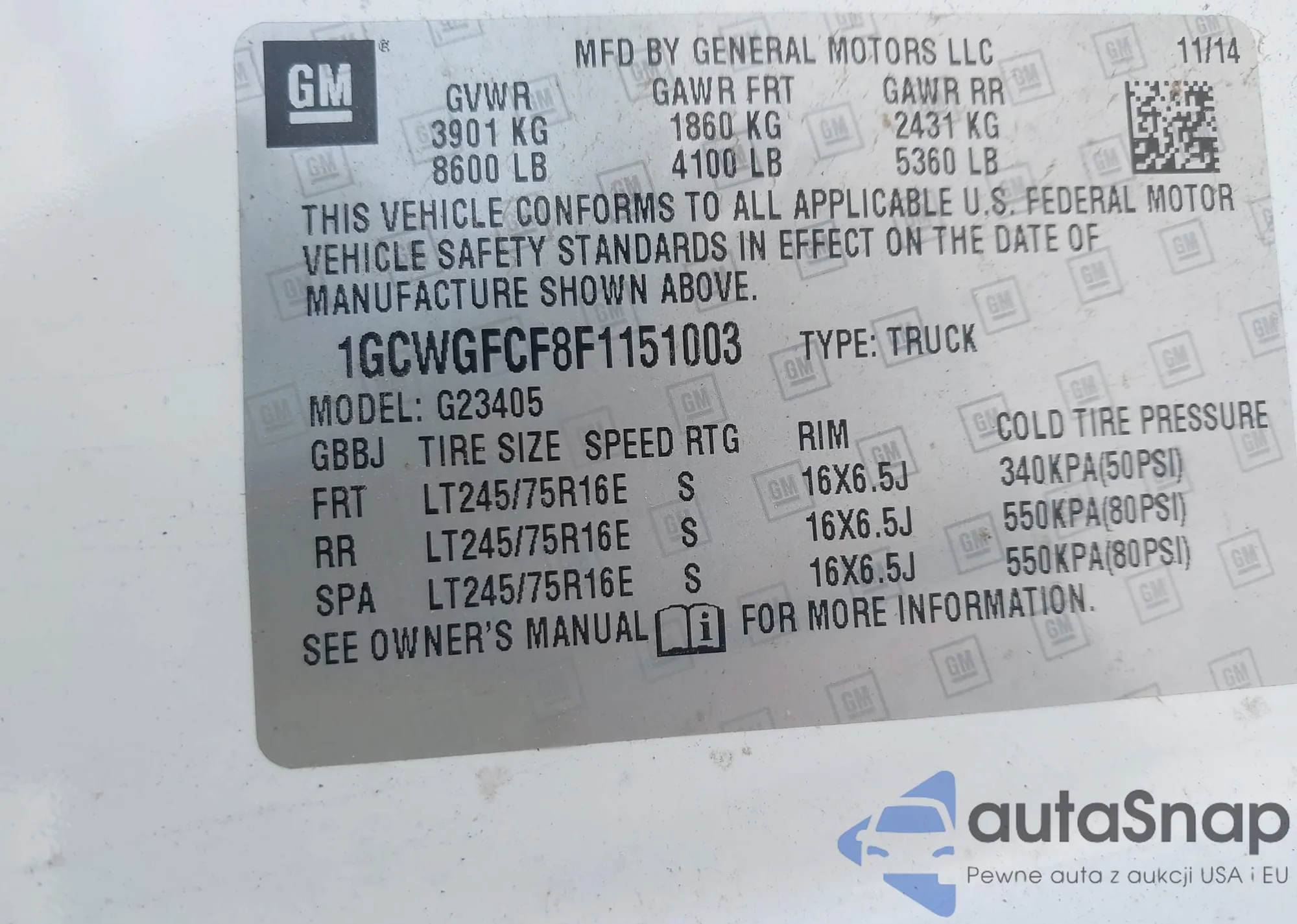 • VIN 1GCWGFCF8F1151003
