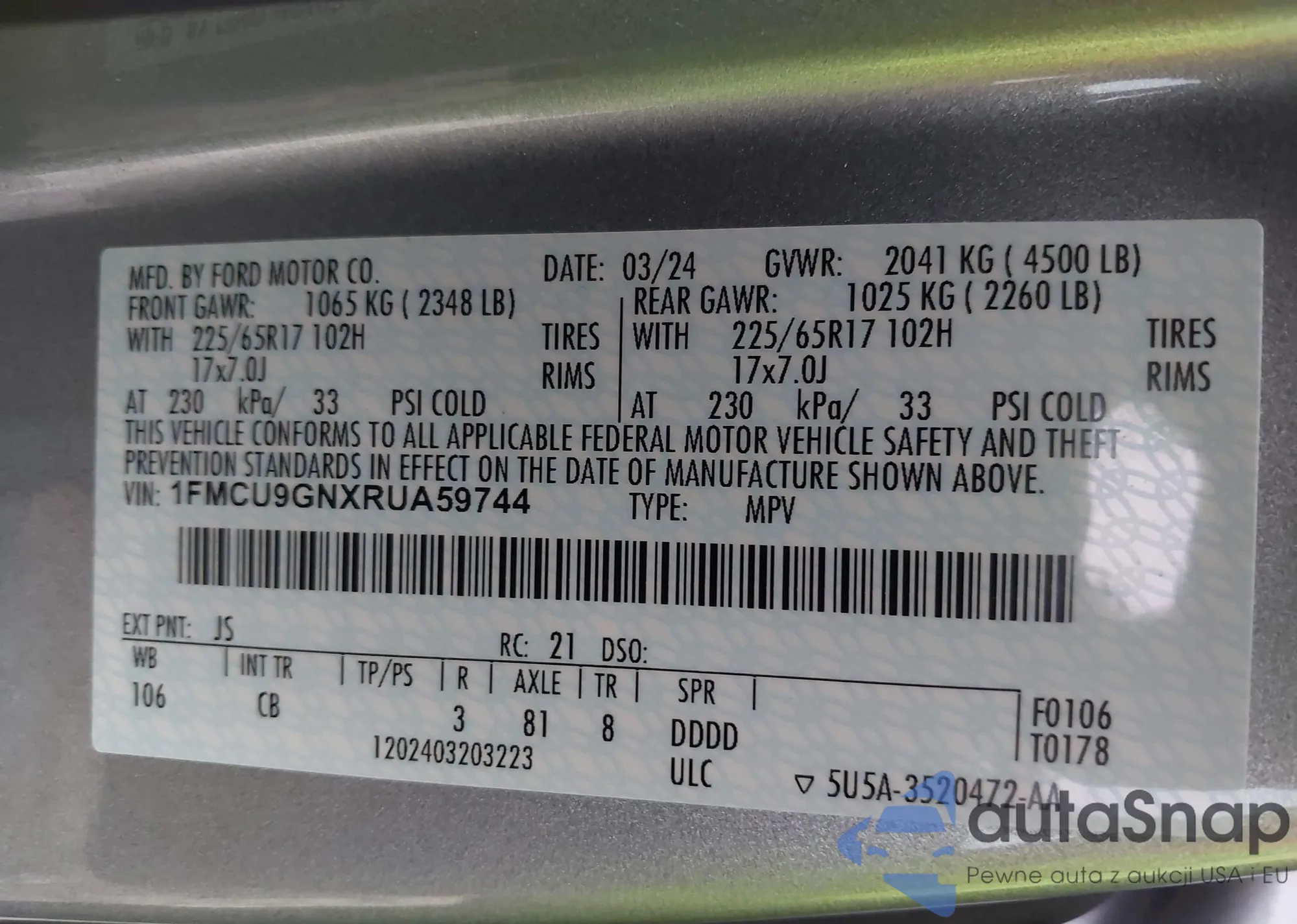 LOT: 42980319 VIN: 1FMCU9GNXRUA59744