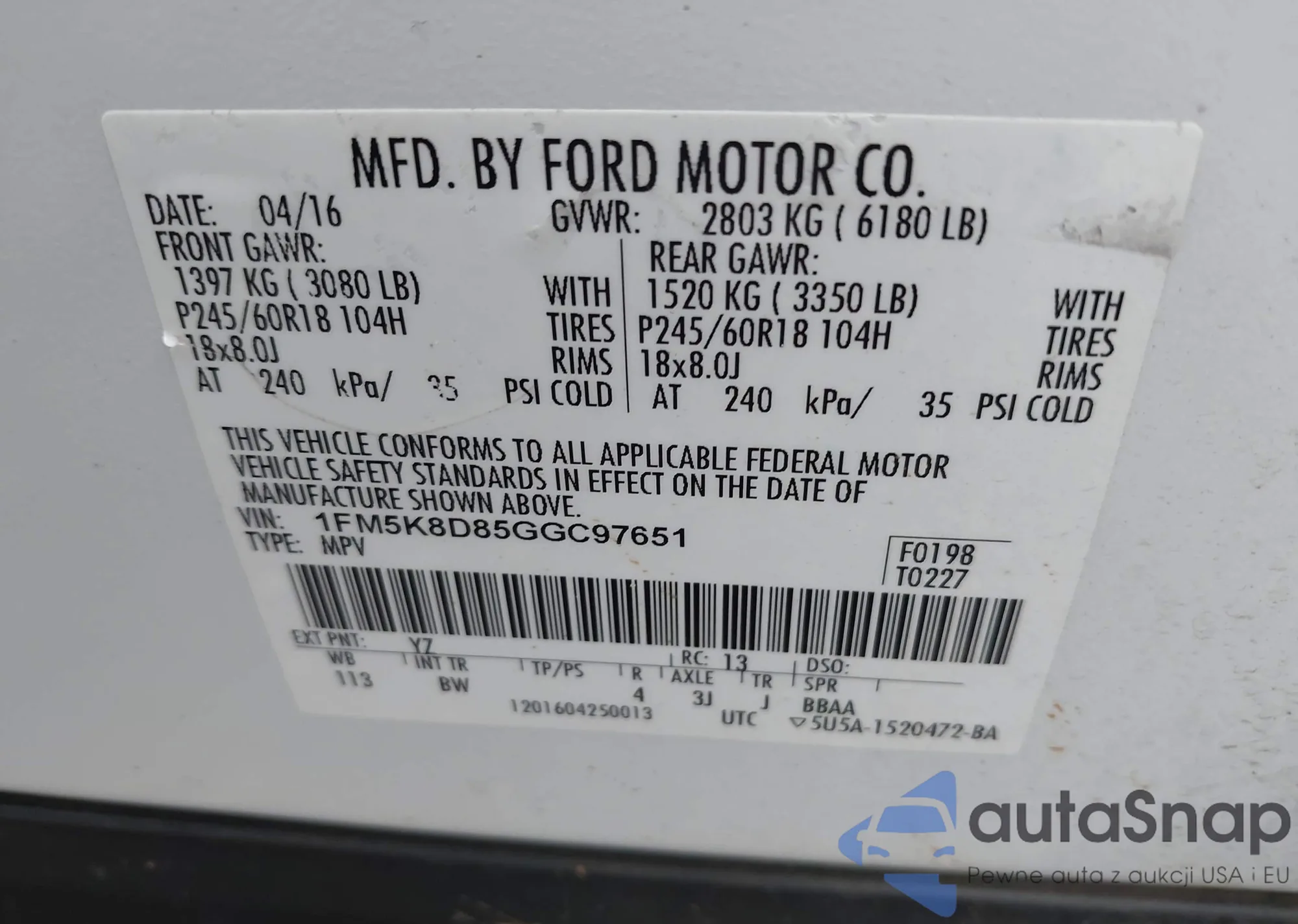 • VIN 1FM5K8D85GGC97651
