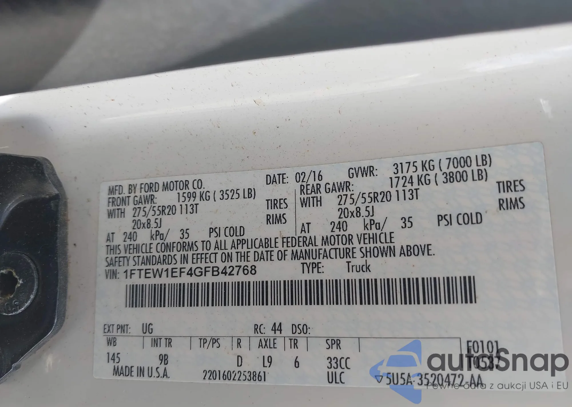 LOT: 43062181 VIN: 1FTEW1EF0GFB33419