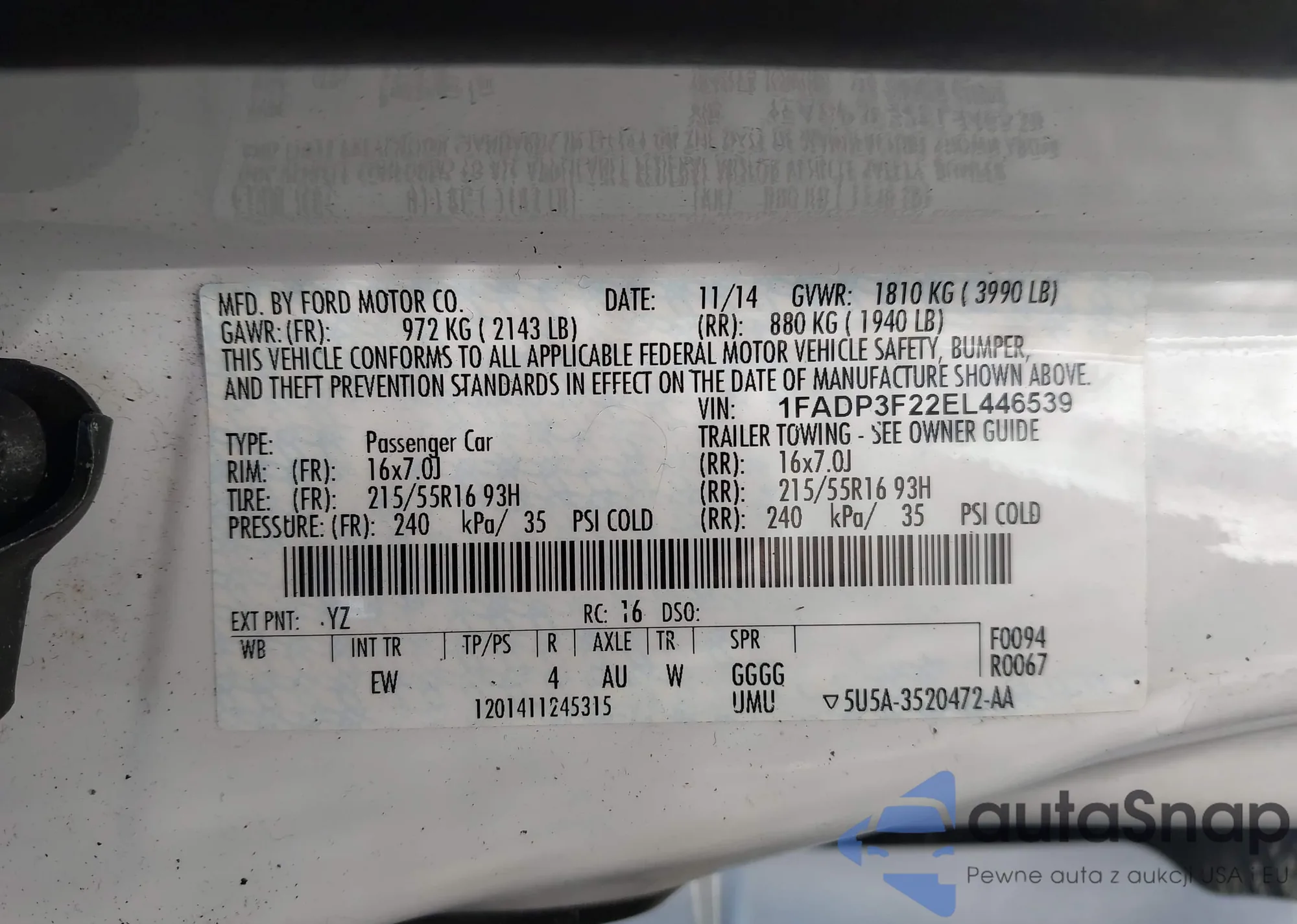 • VIN 1FADP3N20GL254072