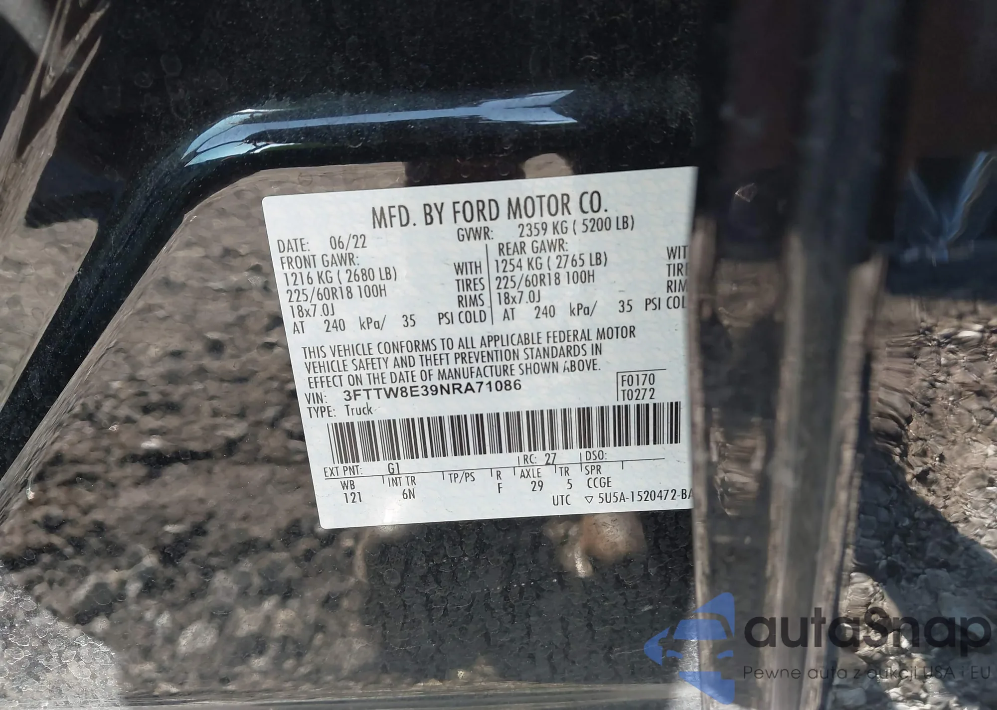 LOT: 42997629 VIN: 1FMSK8JH0NGB31137