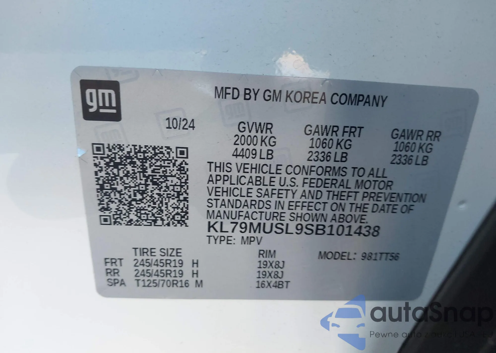 LOT: 43040648 VIN: 1GKKNLLS5MZ217445