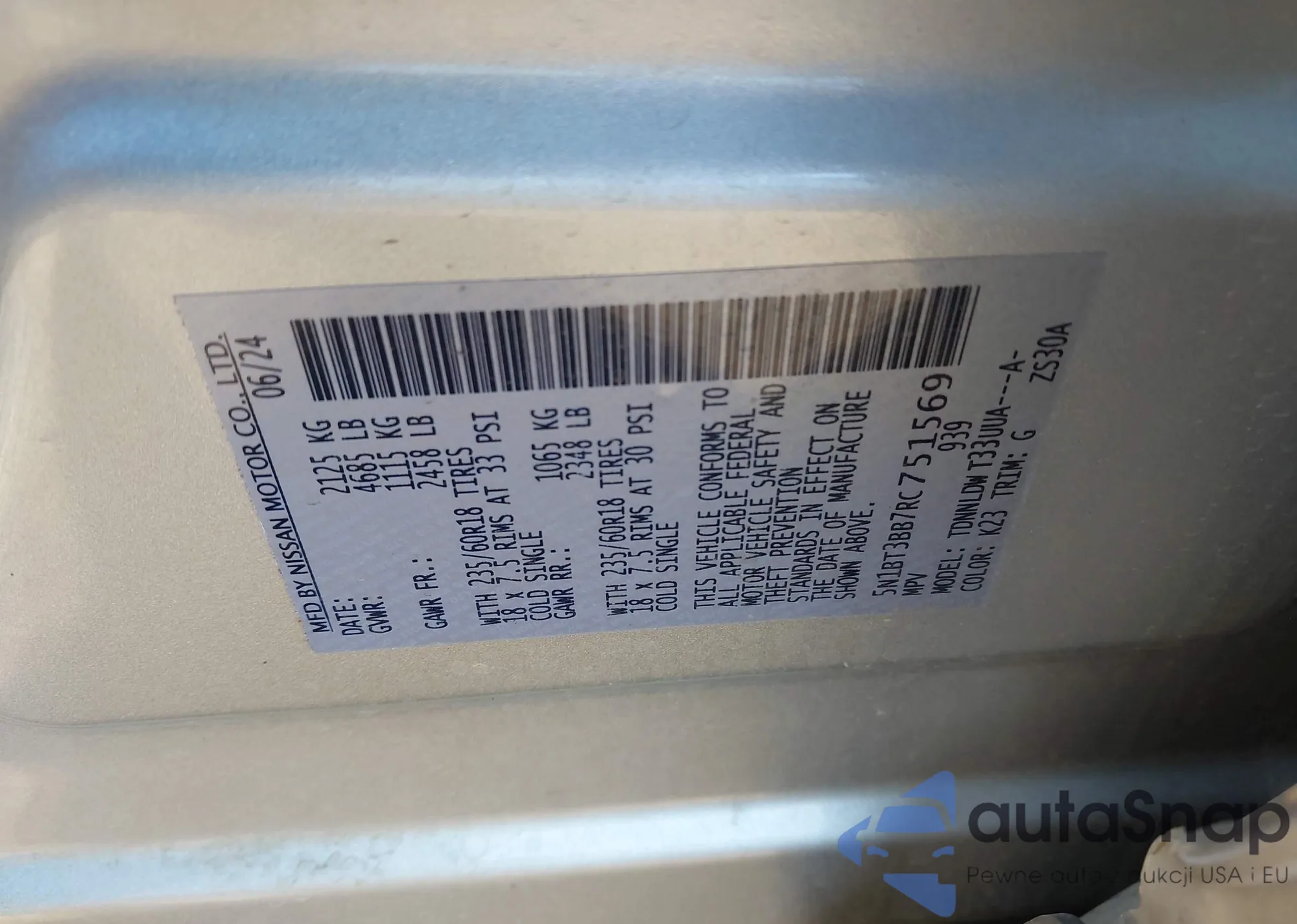 • VIN 5N1BT3BB7RC751569