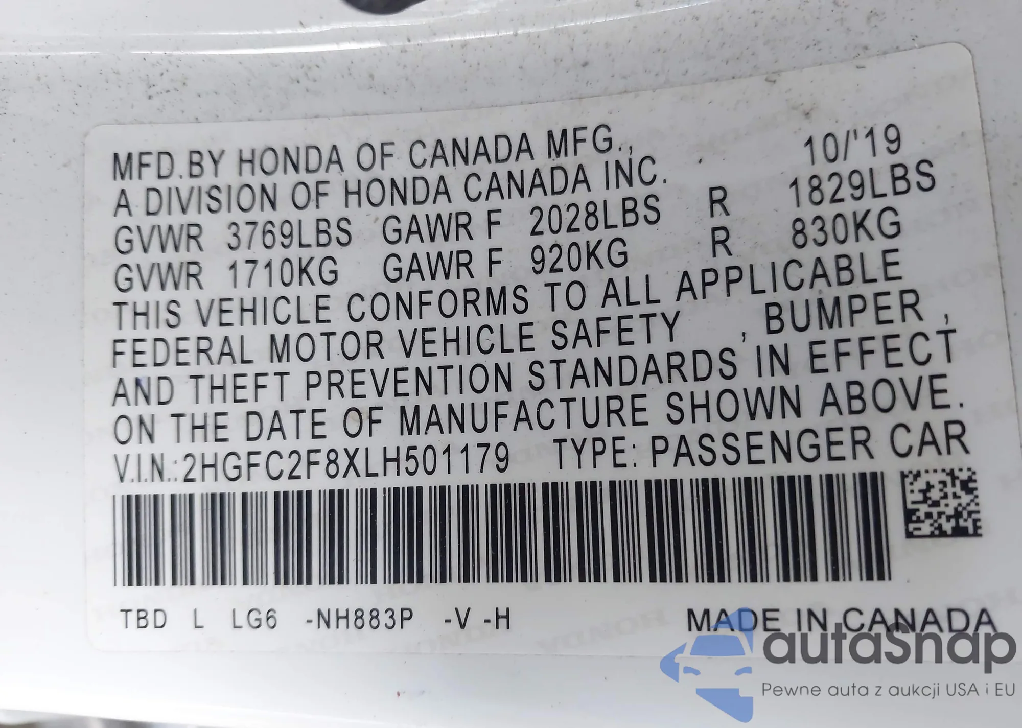 LOT: 42994164 VIN: 2HGFE1F70NH317612