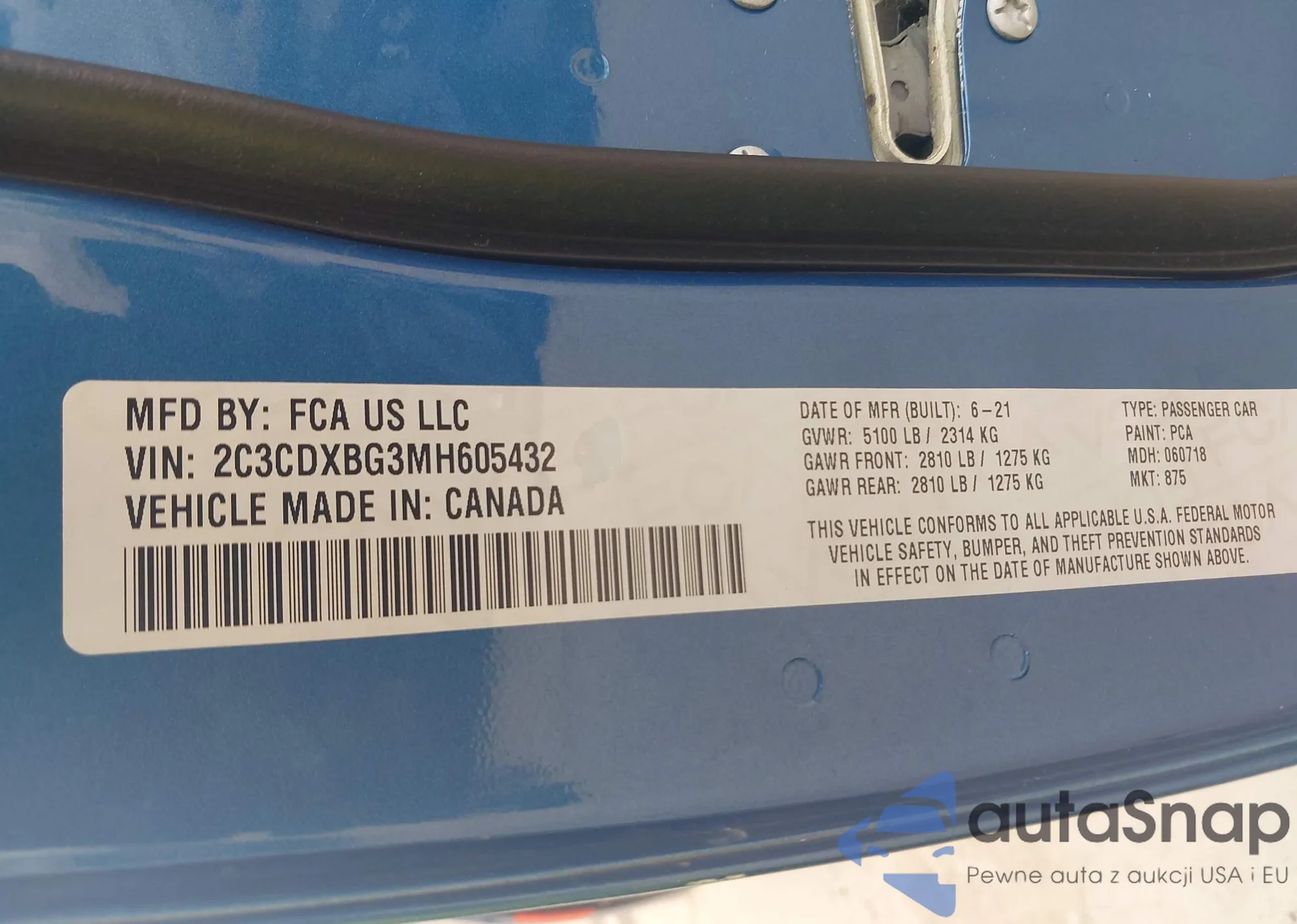 • VIN 2C3CDXBG3MH605432