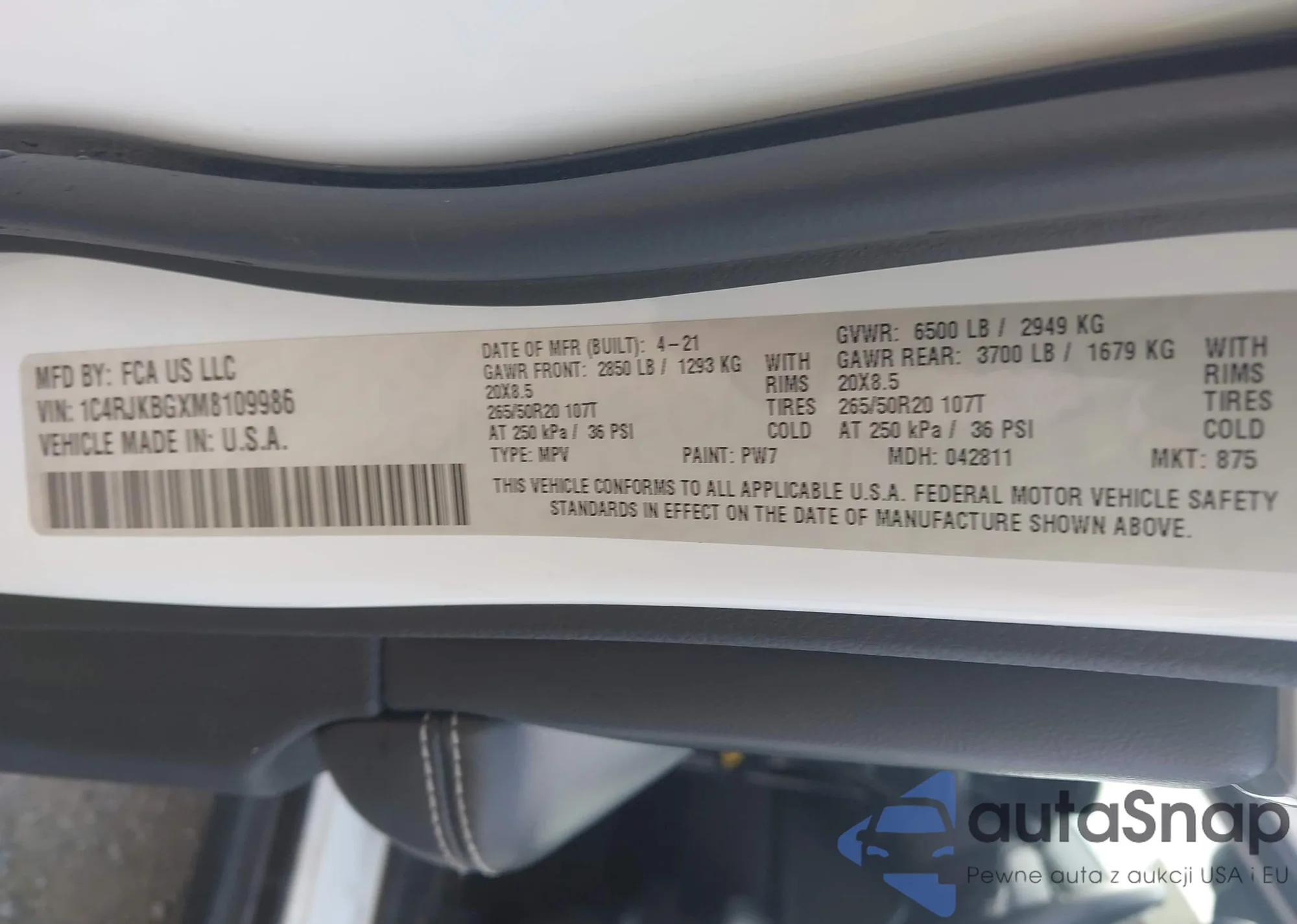 • VIN 1C4RJKBGXM8109986