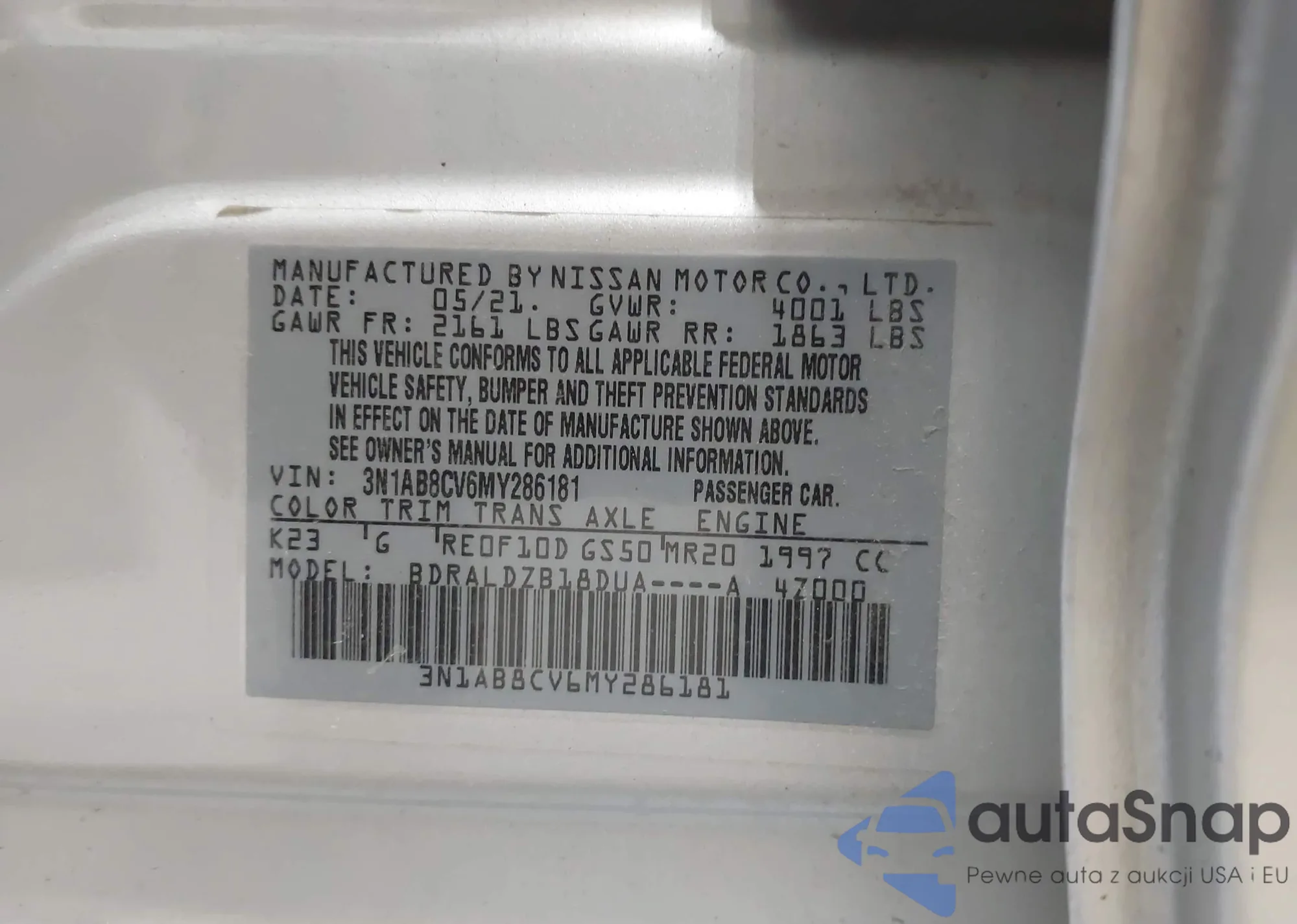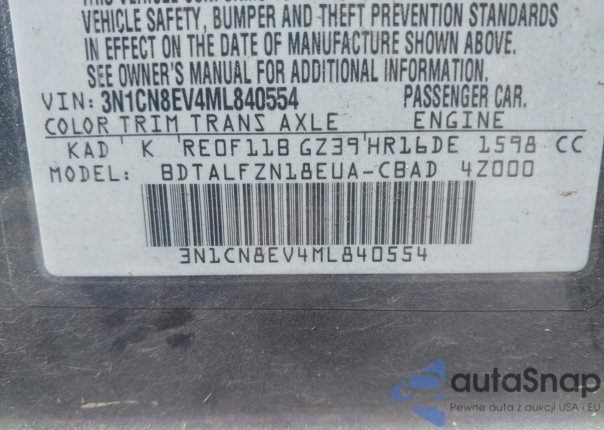 • VIN 3N1CN8EV4ML840554