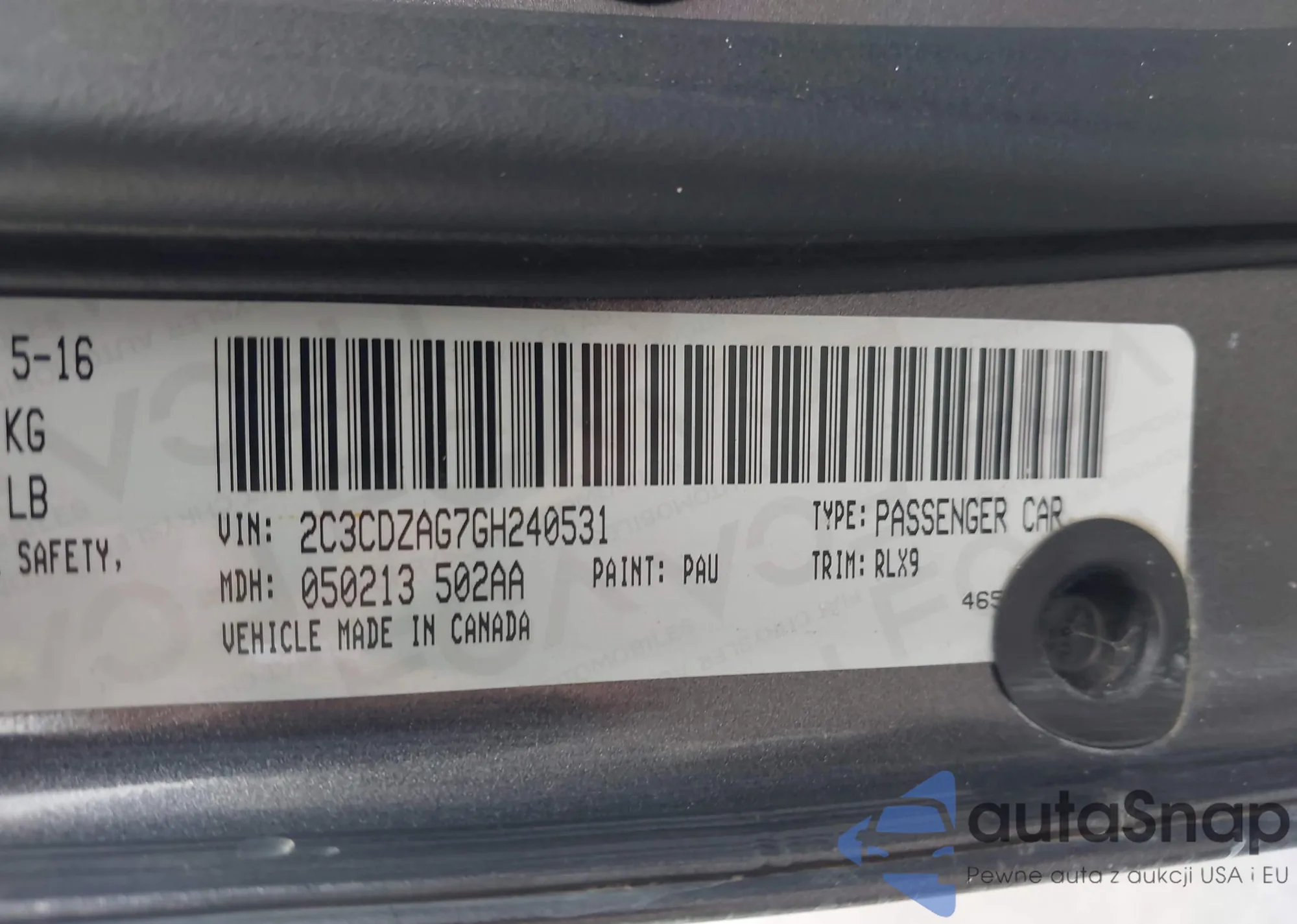• VIN 2C3CDZAG7GH240531