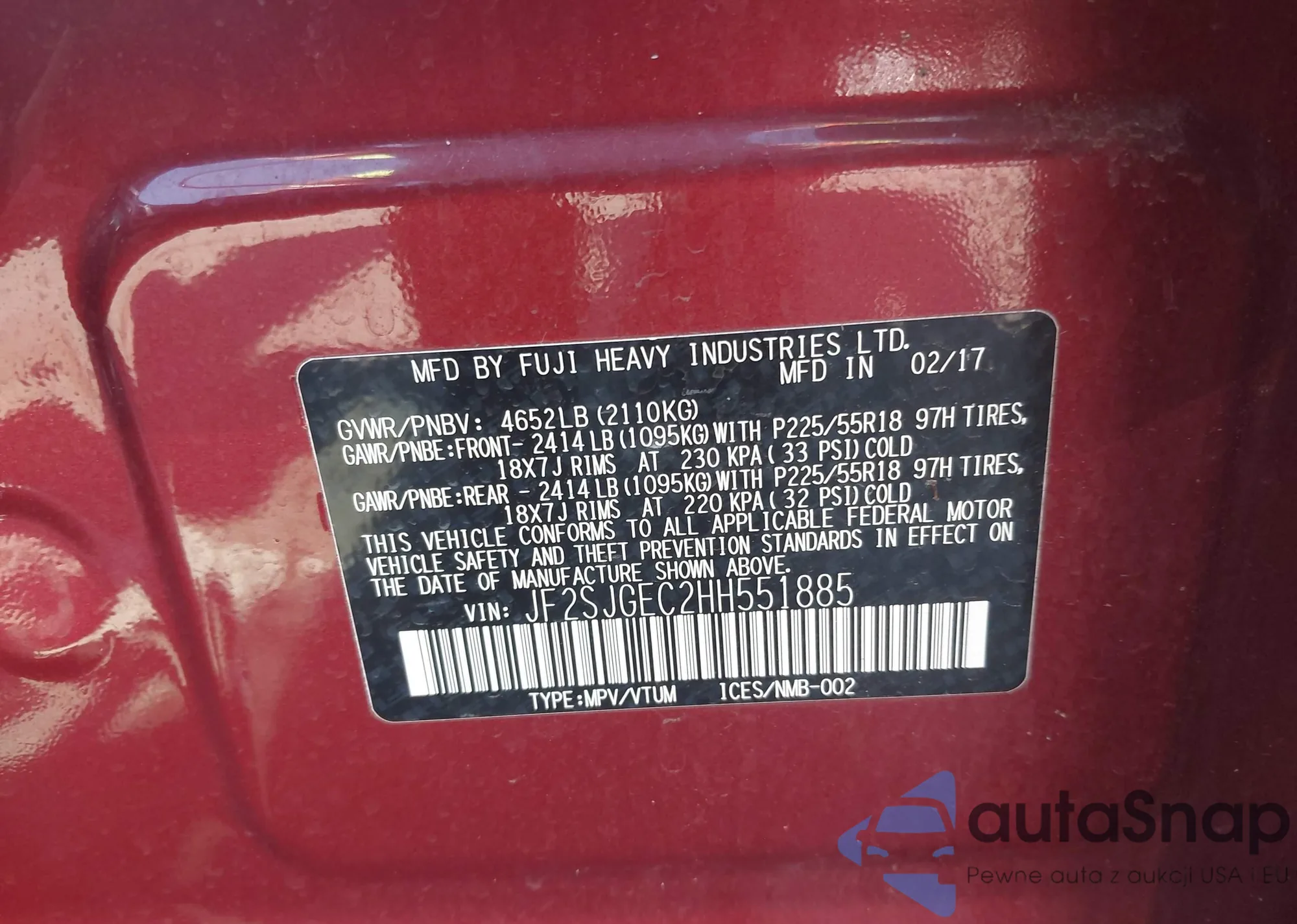 LOT: 43167640 VIN: JF2SHADC5DH404156