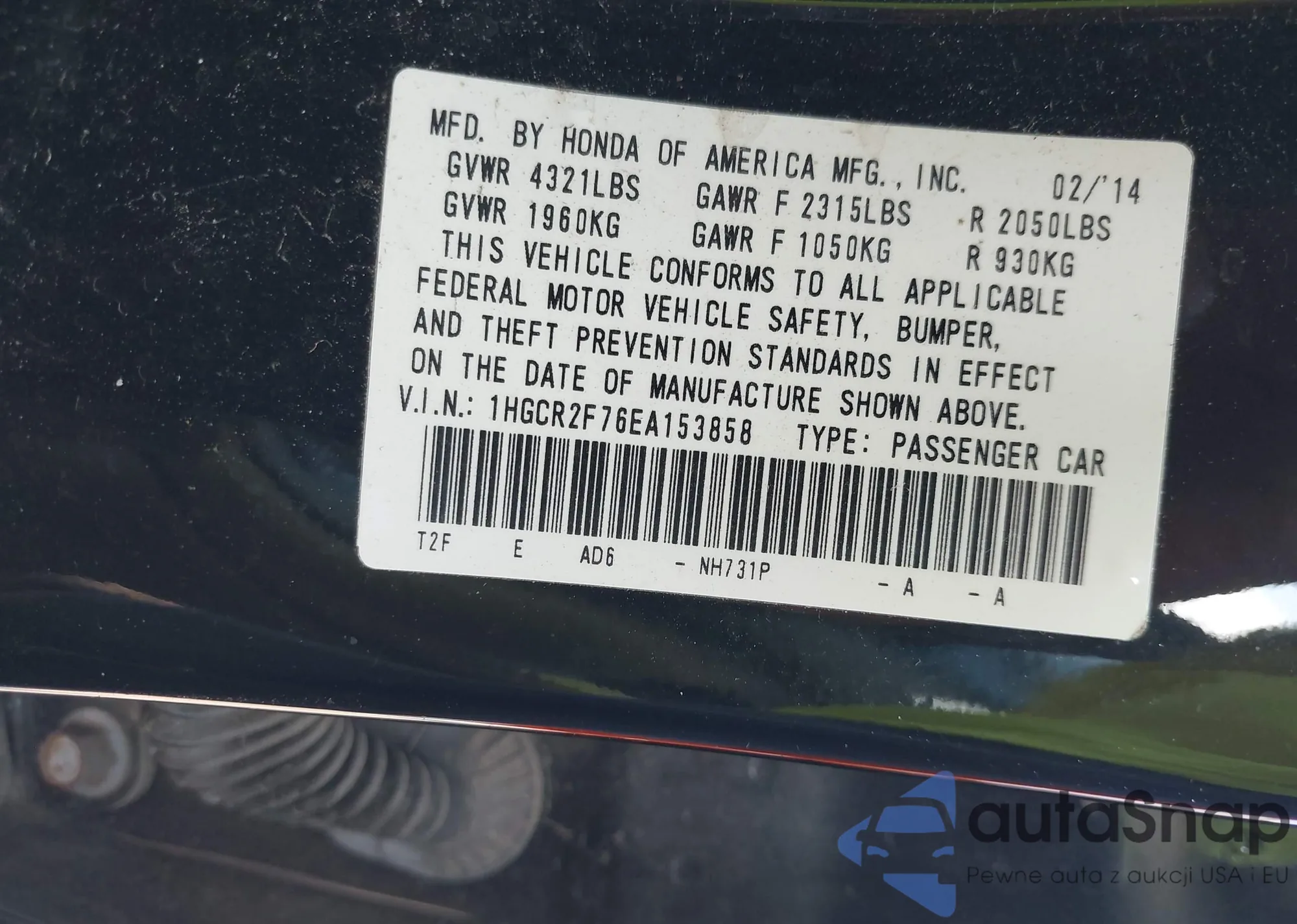 • VIN 1HGCR2F76EA153858
