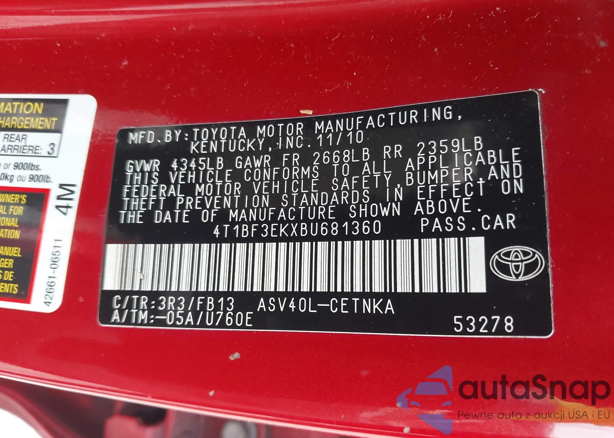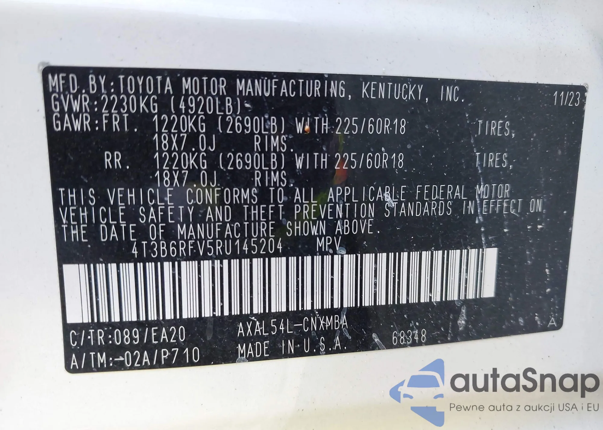 • VIN 4T3B6RFV5RU145204