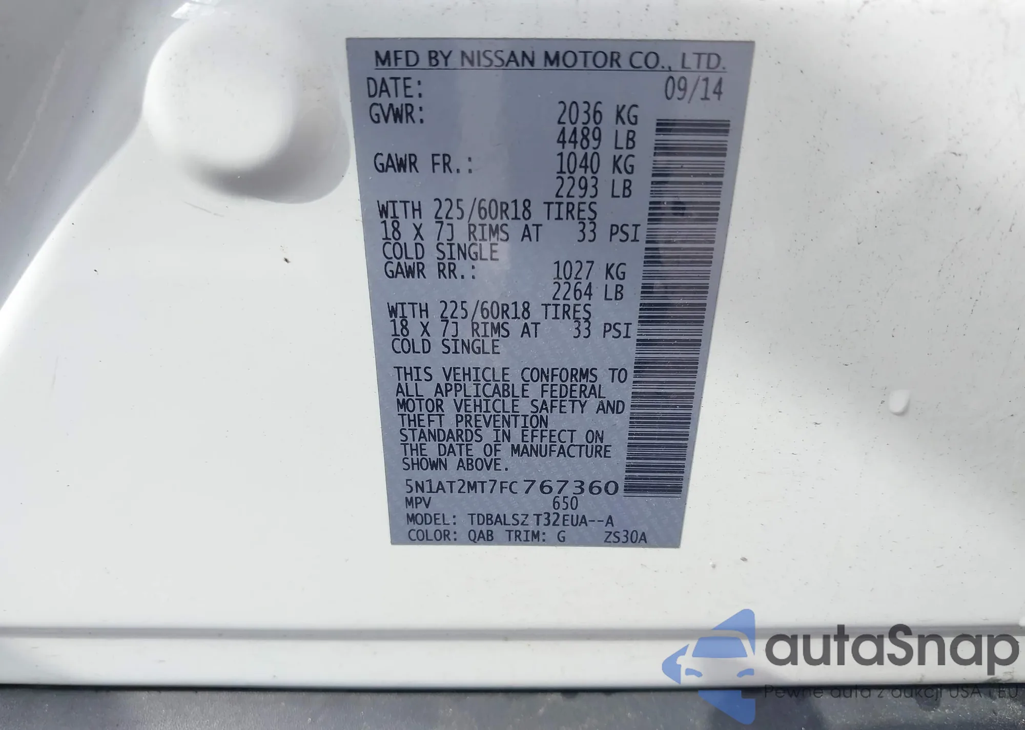 LOT: 42608440 VIN: 5N1AT2MT7FC767360
