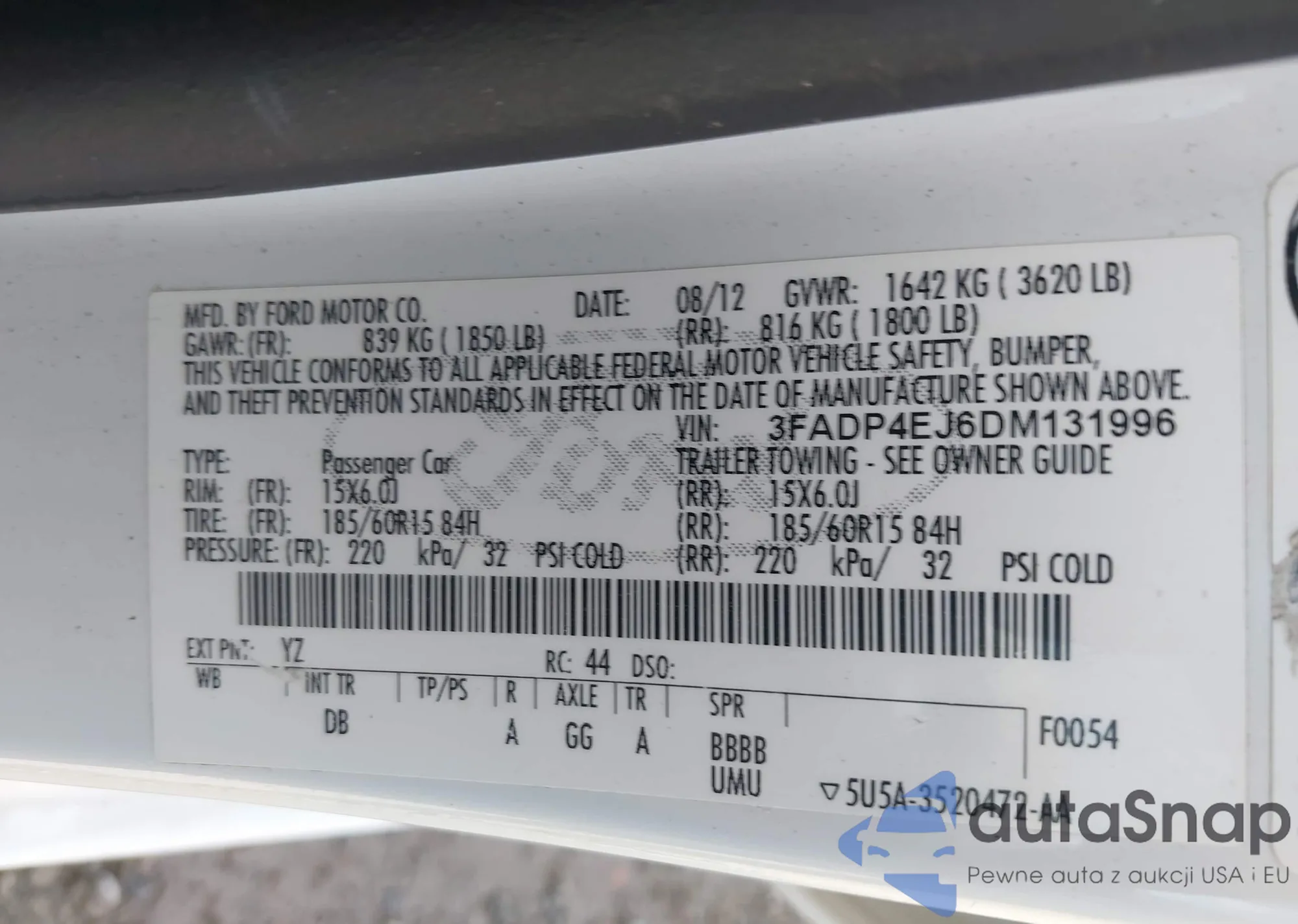 • VIN 3FADP4EJ6DM131996