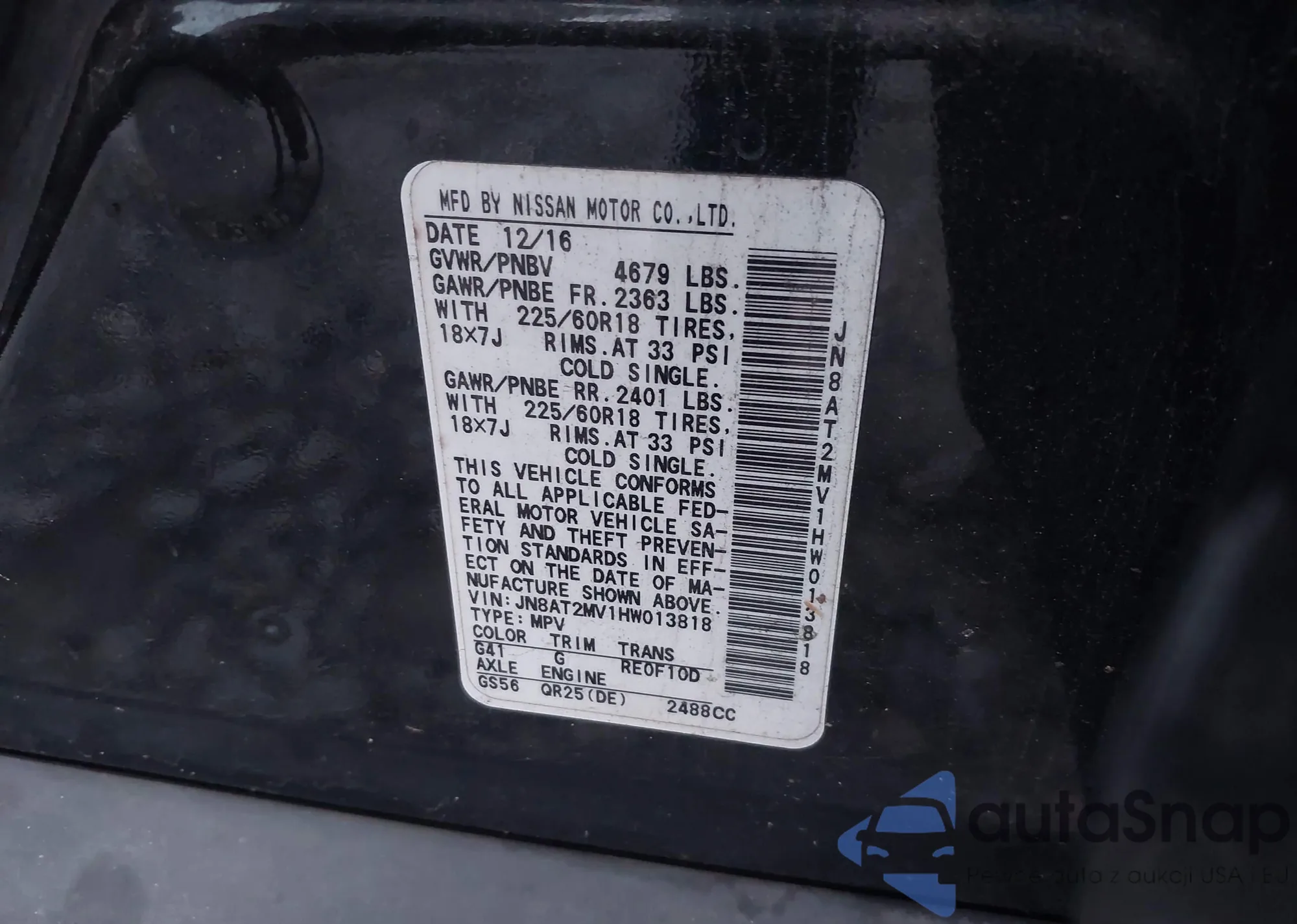 LOT: 43098450 VIN: JN8AT2MV1HW013818